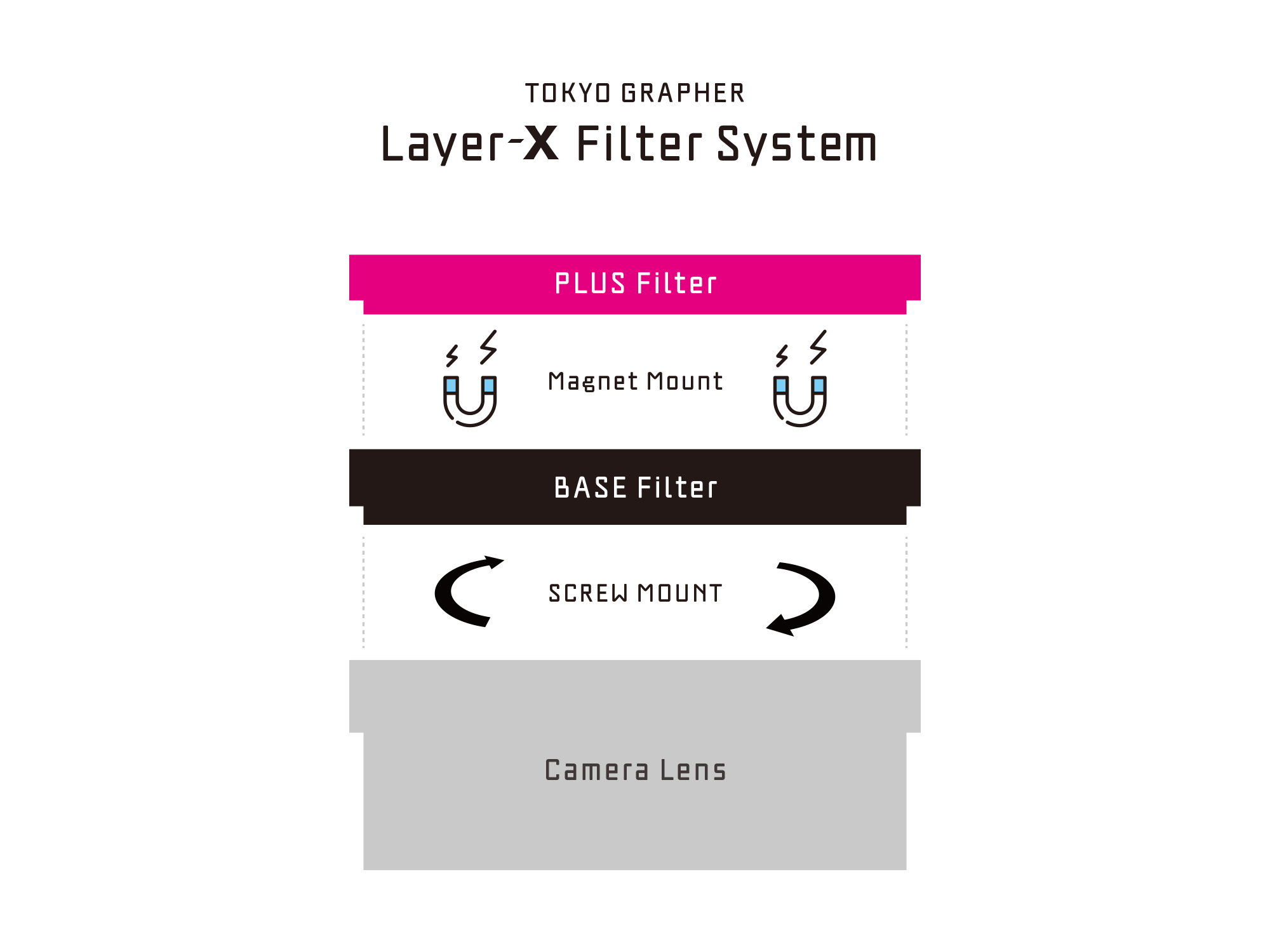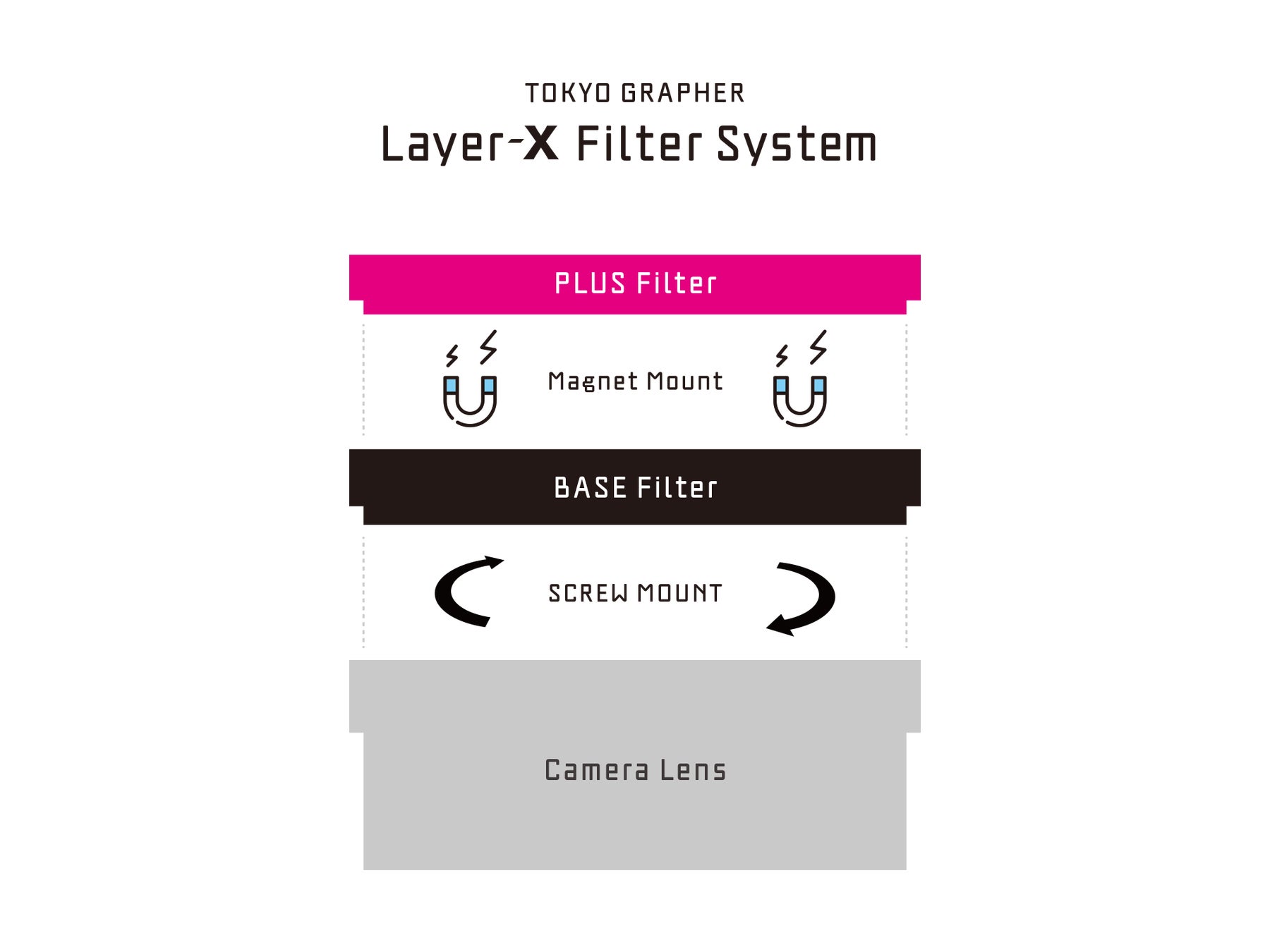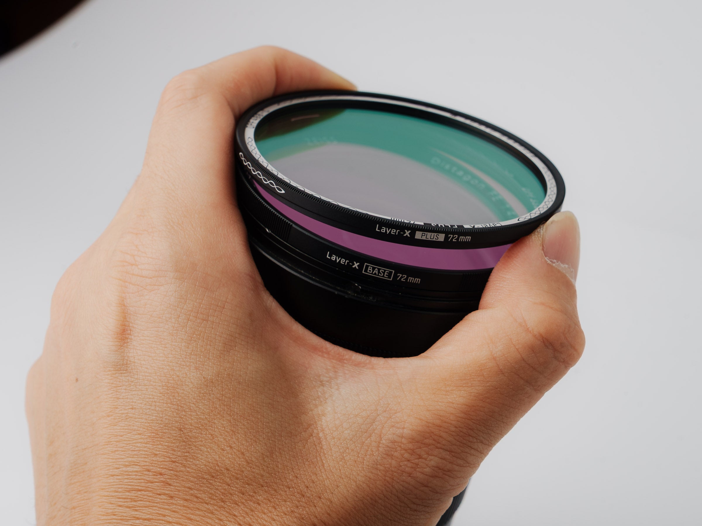 Layer-X は、常用できるベースフィルターと、必要な表現だけを重ねる効果フィルターを組み合わせるレイヤー構造を採用したレンズフィルターシステムです。
