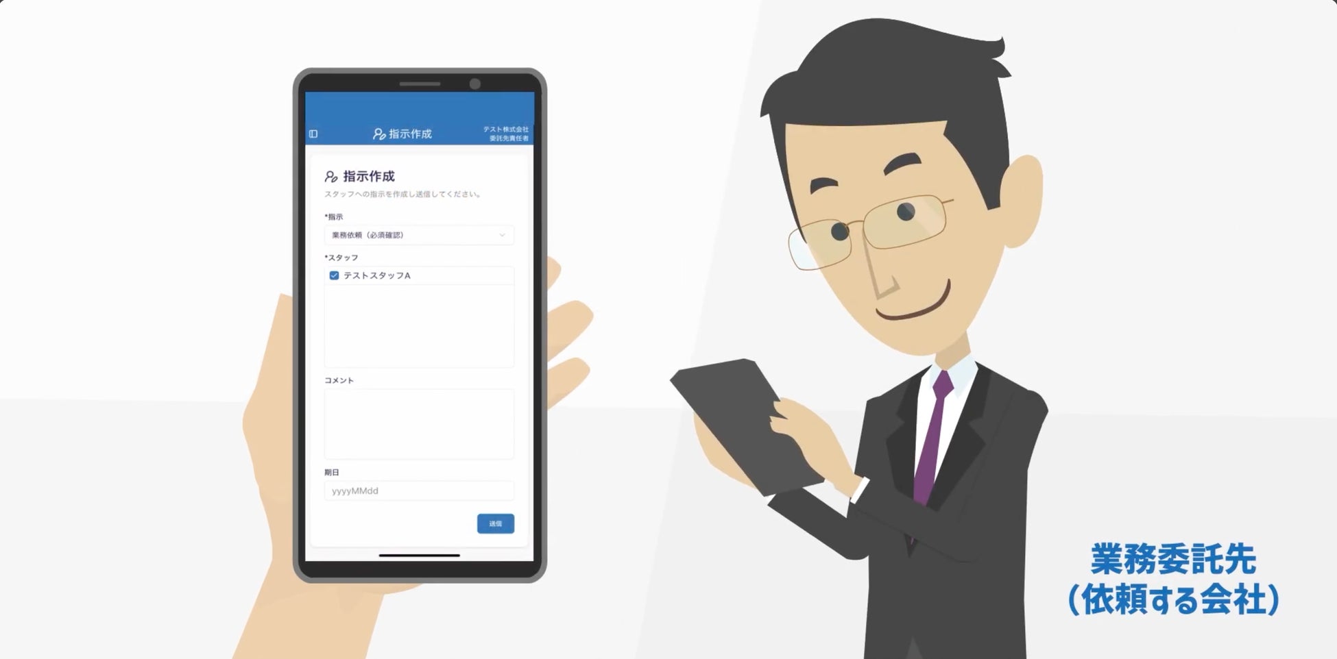 スタッフが指示を確認すると、管理者側へ即座に「受理通知」が届きます。発注者は「正しく伝わったか」を、受注企業は「自社スタッフがどう動いているか」をリアルタイムで可視化。現場の不透明さを解消します。