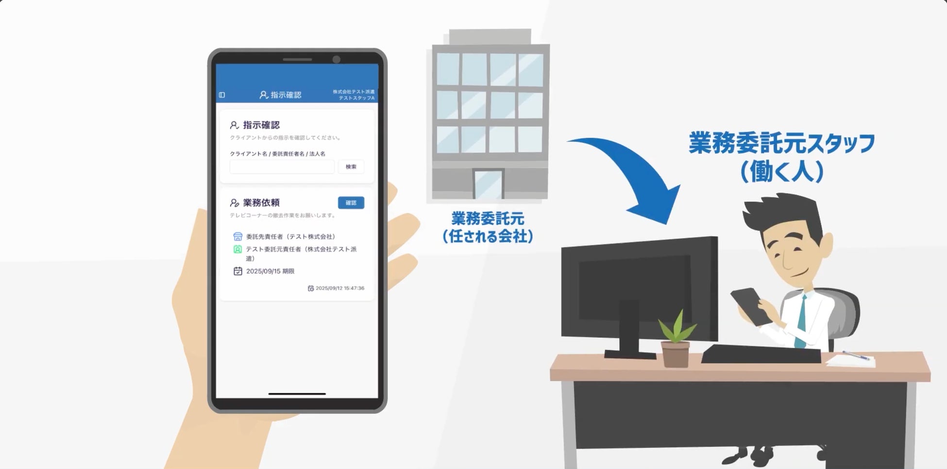 不適切な直接指示や個人チャットでの要求を構造的に抑制することで、発注者・受注者・スタッフの全員が正しいルールのもとで働ける「三方よし」の環境を支援します。