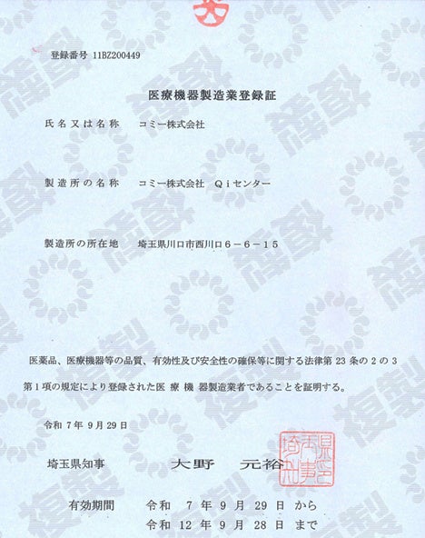 コミー株式会社、医療機器製造業の登録を背景に体制を強化