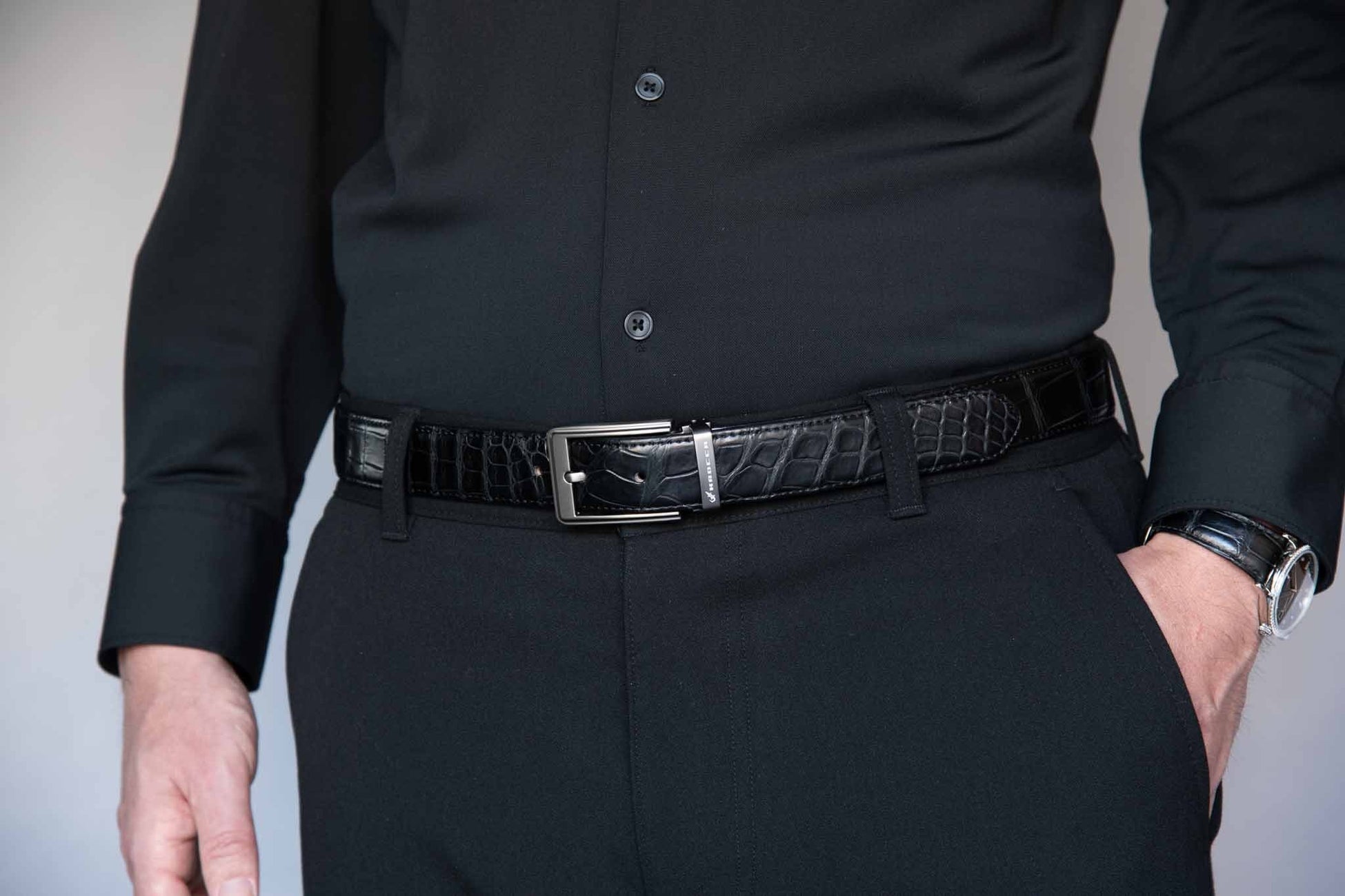 ベルト 3型 スーツにもカジュアルな装いにも馴染む、表情豊かなクロコダイルベルト