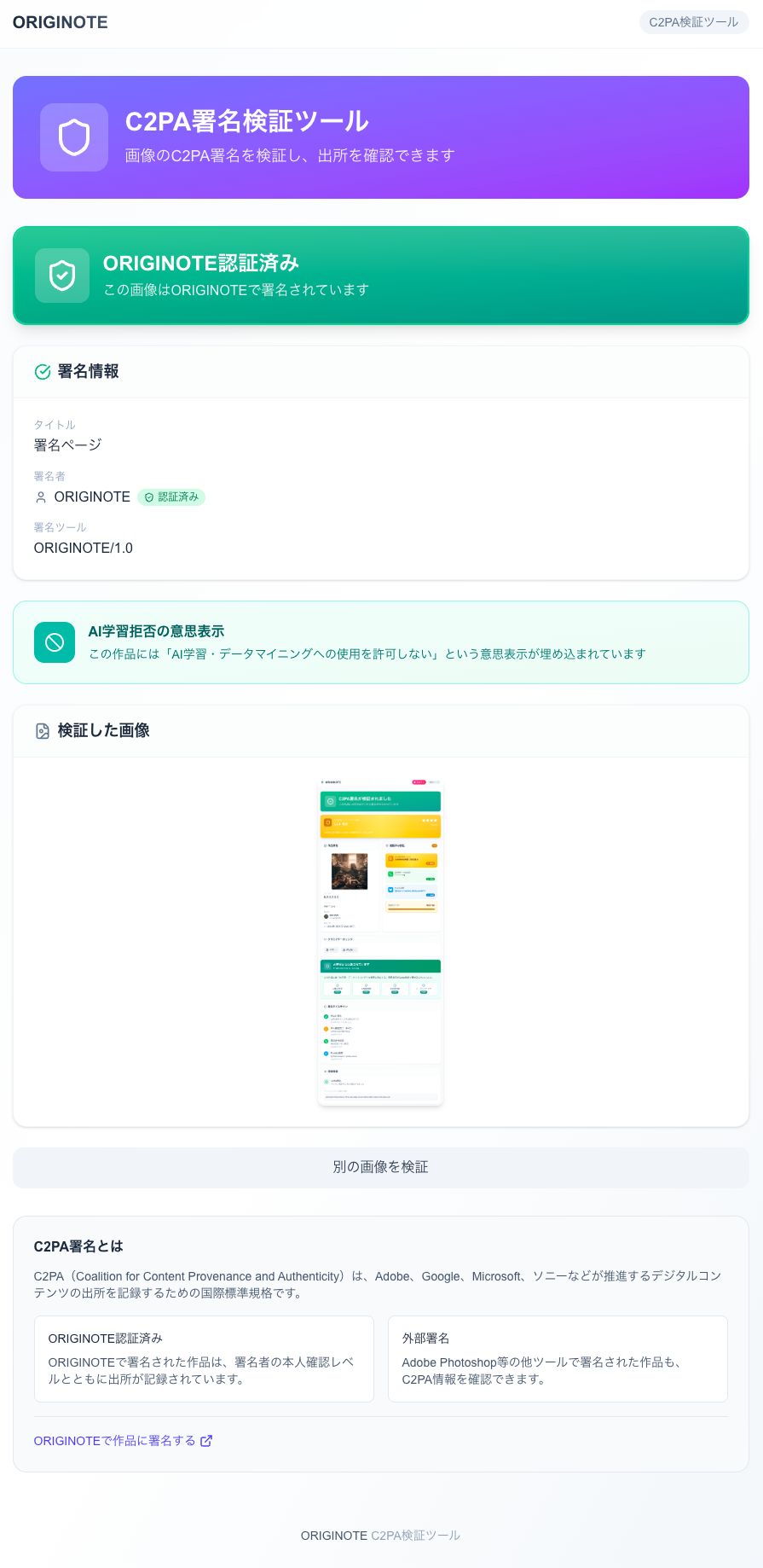 生成AI時代のクリエイターを守る、ディープフェイク時代の「本物」を証明する。国際標準規格C2PA準拠のデジタル署名サービス『ORIGINOTE』提供開始