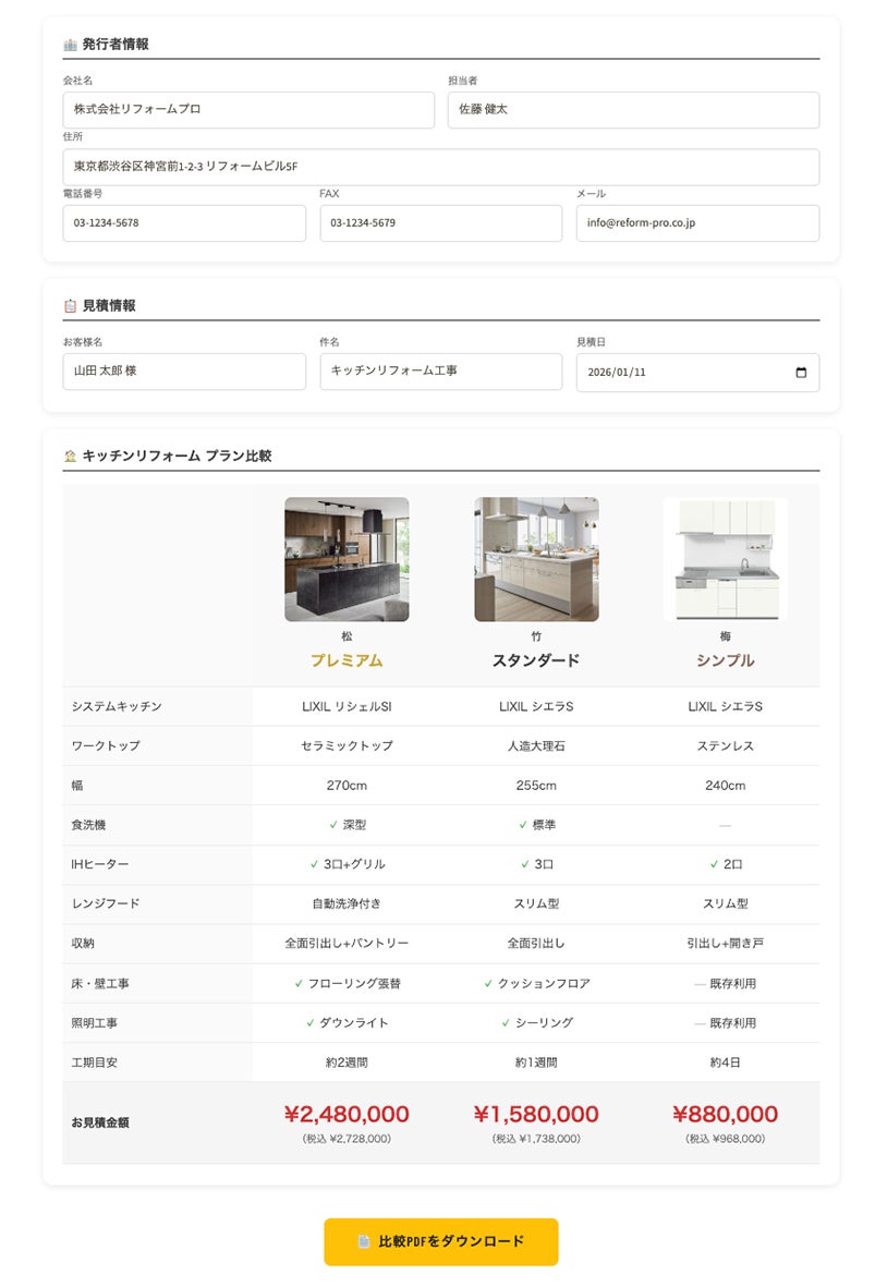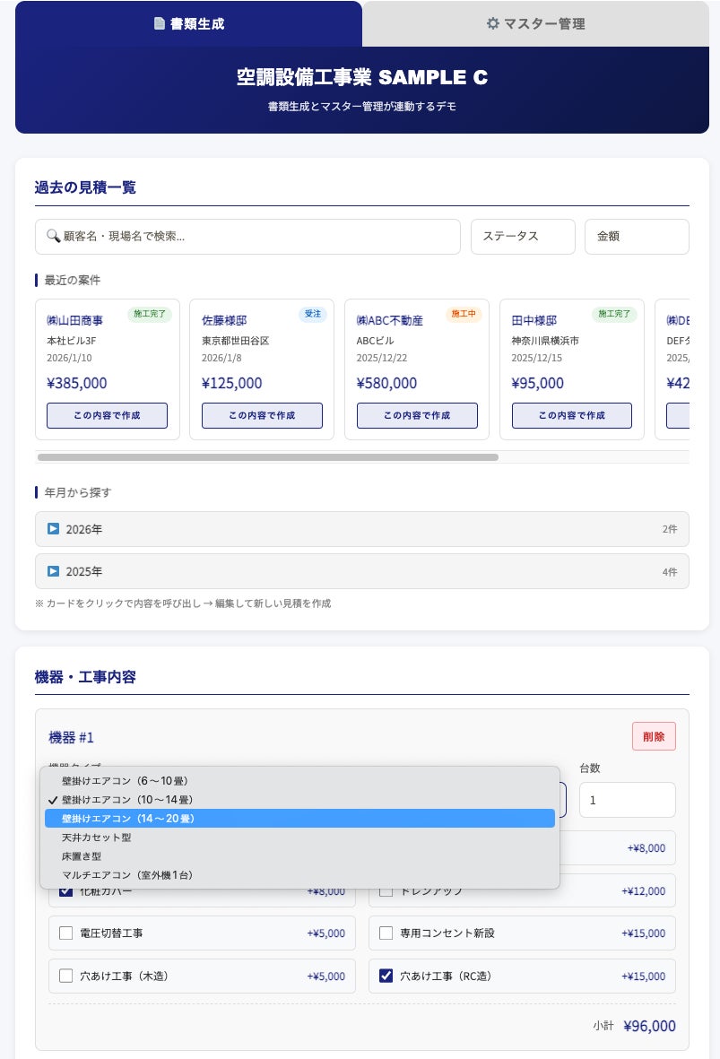 スタンダード見積: 秘伝の計算ロジックを搭載。誰でも即座に、正確に積算。
