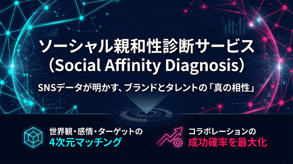 【新サービス】SNSデータでブランドとパートナー(タレント/IP/スポーツ等)の「真の相性」を可視化。 直感に頼るキャスティングやコラボ選定をデータで裏付ける「ソーシャル親和性診断」を提供開始