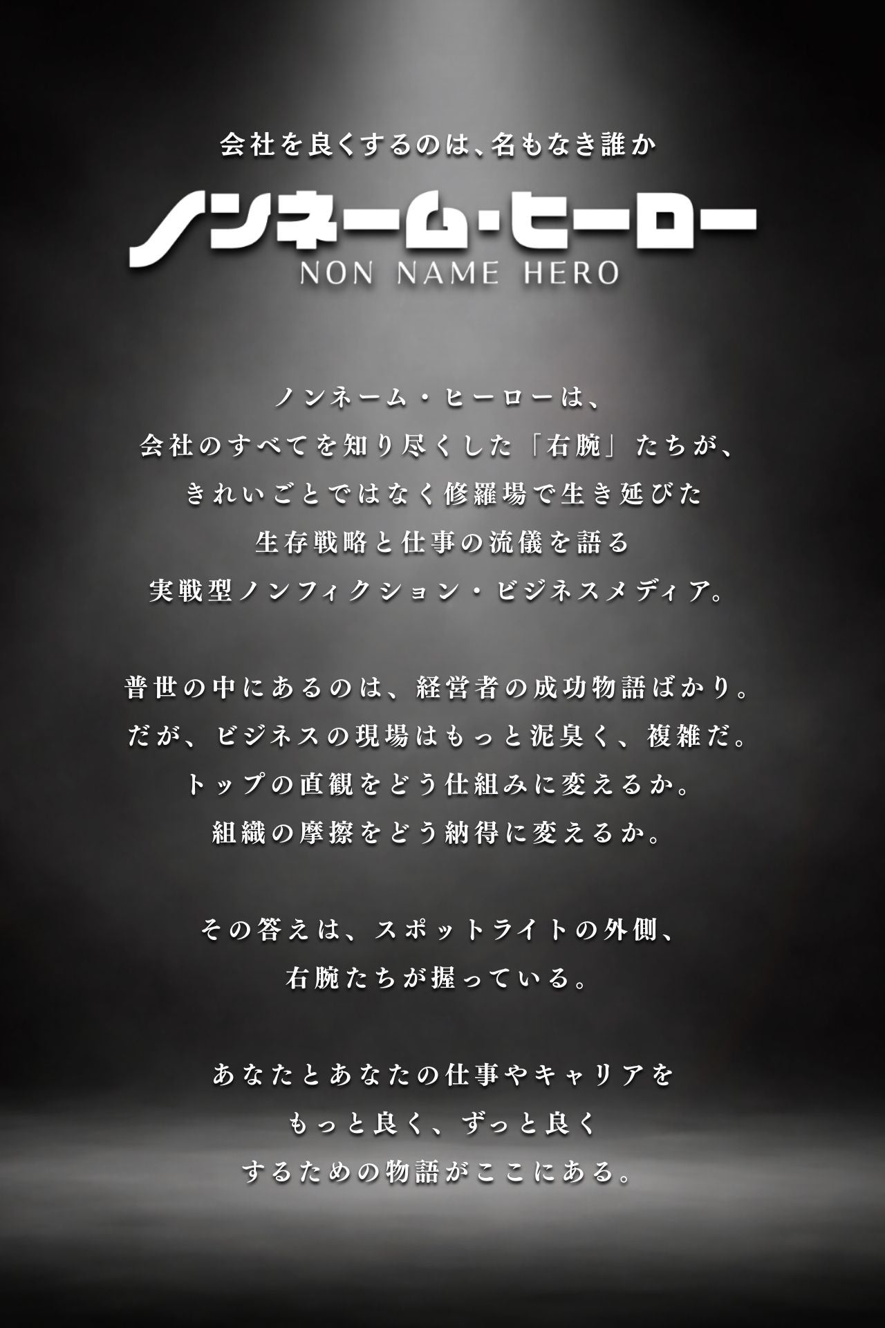 ビジョンを語るのがトップの仕事なら、そのビジョンを「採用・育成・定着」という現実に落とし込み、現場の摩擦や混沌を引き受けているのは「右腕」たちです。本メディアは、表舞台に出ることの少ない「名もなき英雄(NON NAME HERO)」たちの泥臭い仕事術と、組織を救った決断の物語を記録し、再現可能な形で残すために立ち上がりました。