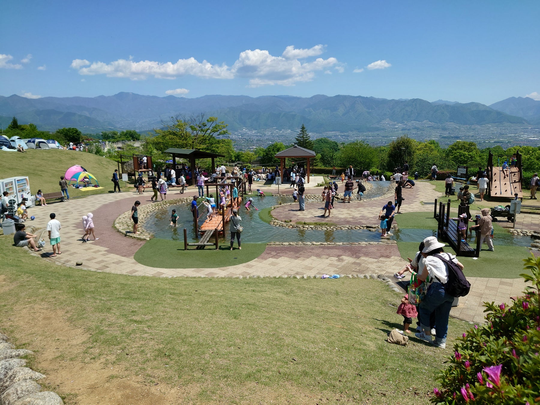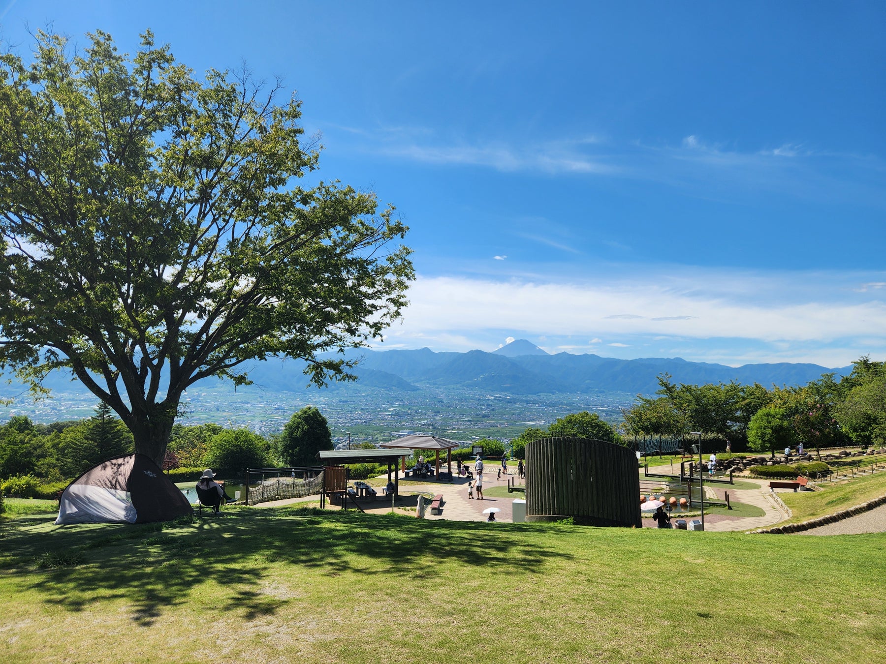 富士山や八ヶ岳、南アルプスなど豊かな山々に囲まれた山梨市の高台に「山梨県笛吹川フルーツ公園」があります。