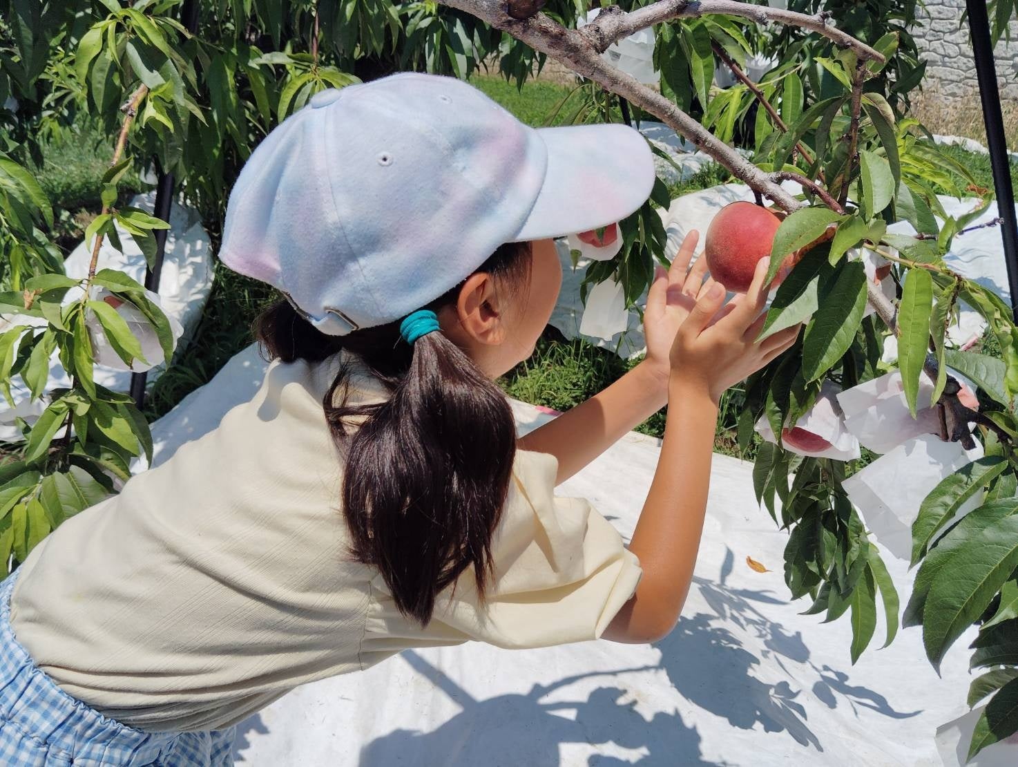園内には江戸時代に「甲州八珍果」と呼ばれ、現在も地域で栽培されているモモやブドウなどが実る広い果樹園があり、植物やくだものを間近で見ることができます。
