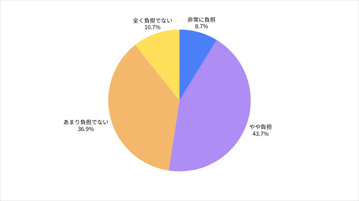 非常に負担に感じる(16.5%) / やや負担に感じる(35.9%) / あまり負担に感じない(38.8%) / 全く負担に感じない(8.7%)