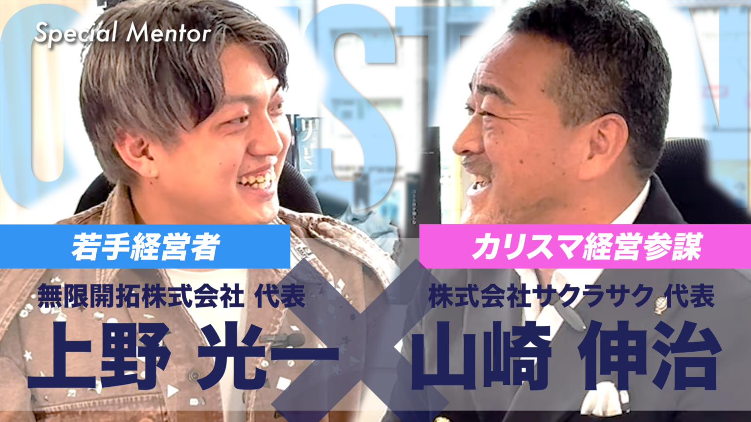 今回の対談は、数多くの大企業で経営参謀を務めてきた株式会社サクラサクの山崎伸治氏が、次世代を担うZ世代経営者と将来を切り開く企画「Special Mentor」にて実現しました。