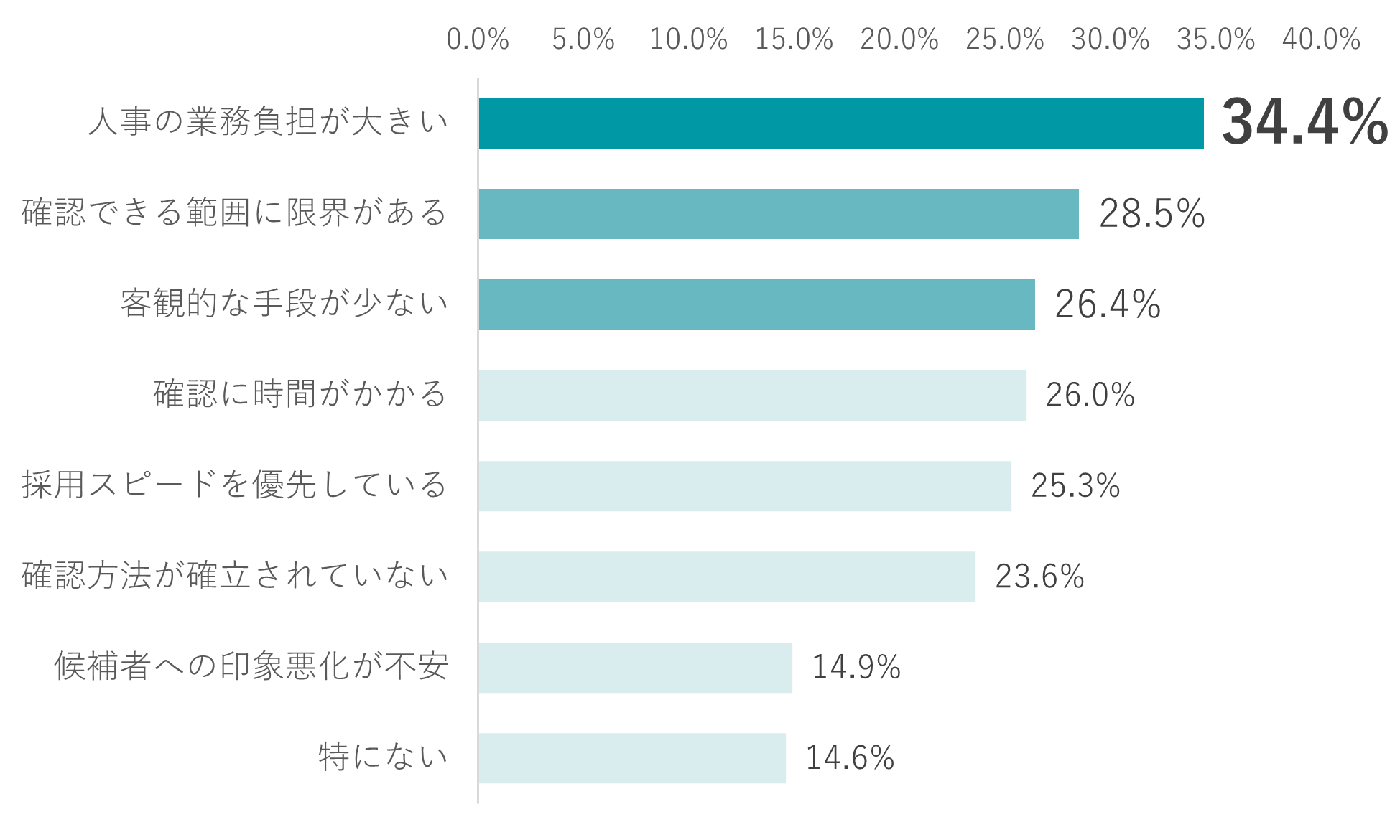 採用判断の裏付け不足、最多理由は「人事の業務負担が大きい(34.4%)」