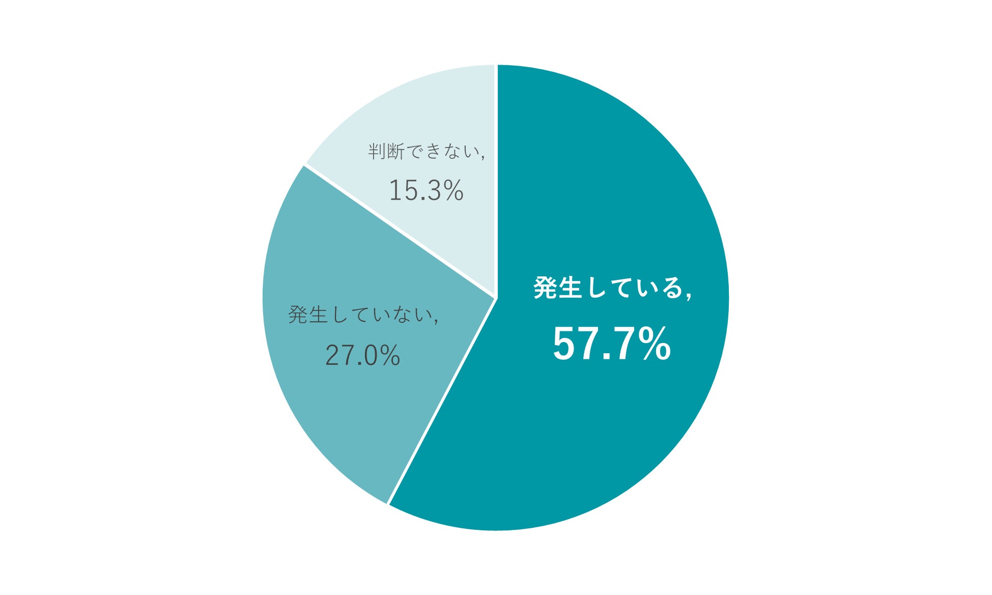 人事部に所属する全国のビジネスパーソン1,000名を対象に、直近1年間(2025年1月~2025年12月)の採用活動を振り返り、採用ミスマッチの発生状況について調査しました。その結果、「採用ミスマッチが発生している」と回答した企業は57.7%にのぼり、約6割の企業が採用後に何らかのギャップを経験している実態が明らかになりました。この結果から、採用判断の難しさは一部の企業に限られた問題ではなく、多くの企業が共通して直面する課題であることがうかがえます。こうした採用ミスマッチは、早期離職や現場負担の増加につながる可能性があり、組織運営や人材活用の観点からも、採用判断の在り方を見直す必要性が高まっています。