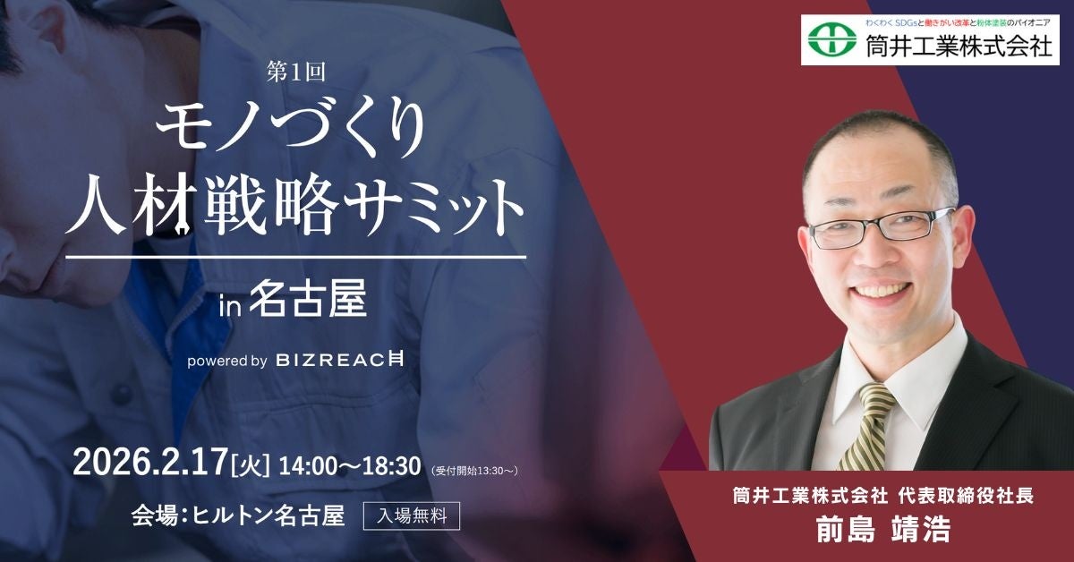 筒井工業株式会社(本社:愛知県半田市、代表取締役社長:前島 靖浩)は、株式会社ビズリーチ主催の「第1回 モノづくり人材戦略サミット in 名古屋」(2026年2月17日開催)に、代表取締役社長 前島 靖浩が招待講演の登壇者として参加することをお知らせいたします。