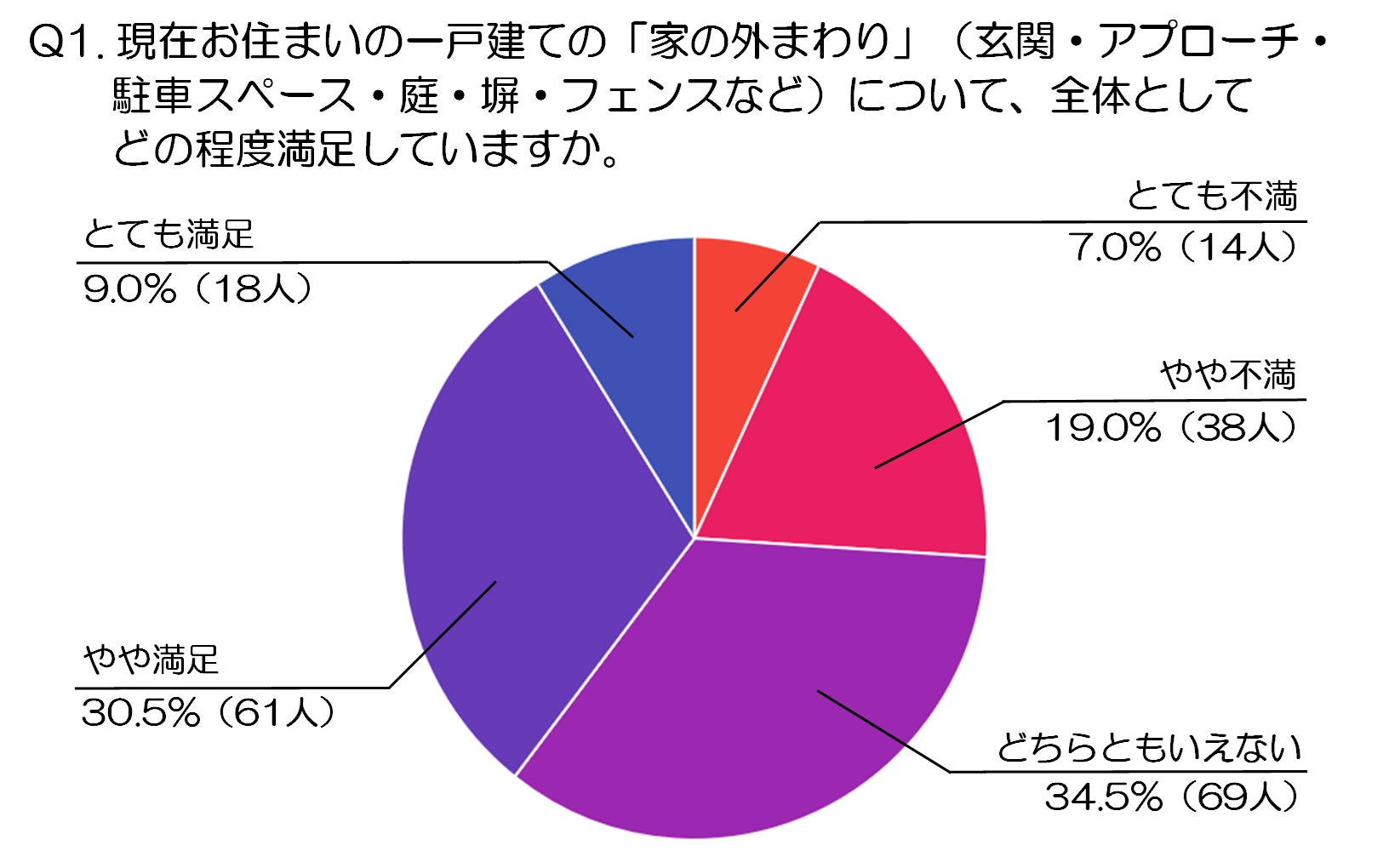 Q1.現在お住まいの一戸建ての「家の外まわり」(玄関・アプローチ・駐車スペース・庭・塀・フェンスなど)について、全体としてどの程度満足していますか。