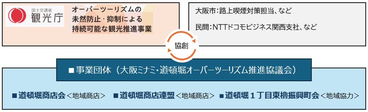 同協議会は、これまでも喫煙問題への対策として、街灯スピーカーで路上喫煙防止などのマナー喚起を呼びかける対策を行ってきたが、2025年の夏、町衆の自走活動だけでは実現が困難な公衆エリアへの喫煙所設置に向けて取り組みを開始。喫煙所設置に向けて大阪市に相談をしながら設置計画を進め、設置に必要な費用等は観光庁に相談し補助金の活用を検討した。また、あんしん・あんぜんな喫煙所の運営に向けて、デジタル技術の活用をNTTドコモビジネス株式会社に相談し、遠隔地でスマホやPCからリアルタイムで喫煙所の様子を見守るモニタリングシステムの仕組みの導入を決定した。