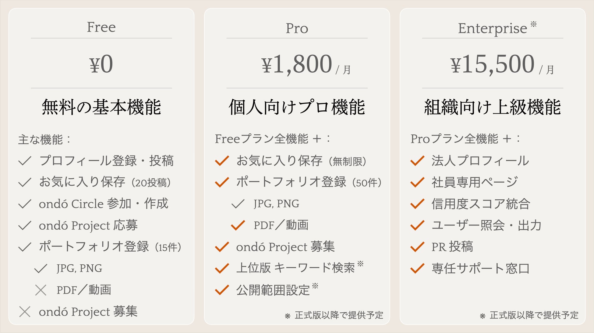 一人でも多くのプロフェッショナルに使っていただきやすいように、「ondó」の基本機能は全て無料で提供いたします 。さらに今回、β期という早い段階から関心や期待を寄せていただいた共創メンバーの皆さまには、「ondó」を最もお得に、そしてフルにご活用いただける恒久的な先行者特典をご用意しています。特典の詳細については、事前登録いただいた方にだけ限定案内しておりますので、ぜひこの機会をお見逃しなく。