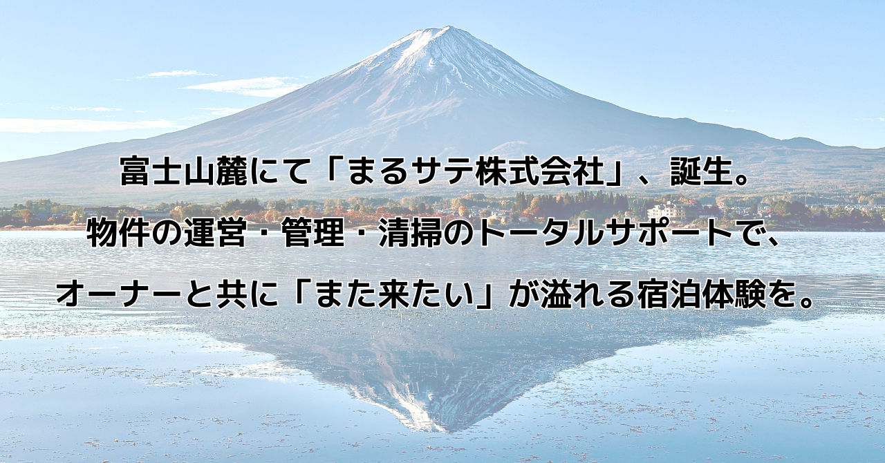 富士山麓で、民泊業をアップデートする「まるサテ株式会社」、誕生。物件の運営・管理・清掃のトータルサポートで、オーナーと共に「また来たい」が溢れる宿泊体験を。