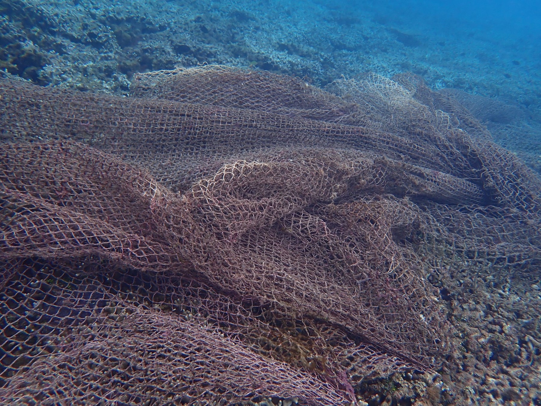 海洋に放置された漁網や釣り糸などの廃棄漁具(ゴーストギア)は、海中で長期に残り続け、サンゴの生育を阻害する要因やマイクロプラスチックの流出にも繋がっています。また、ダイバーの機材・身体に絡まるなど、安全面でも大きなリスクとなっています。