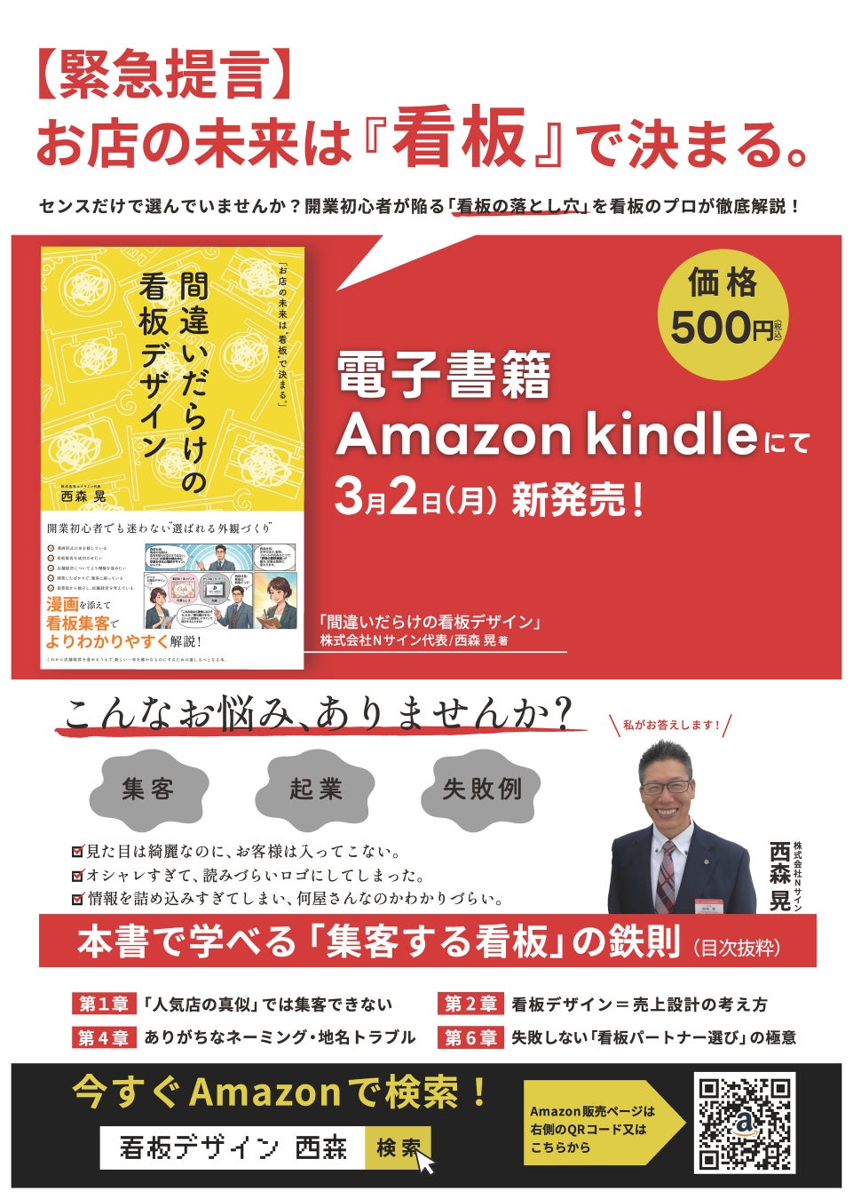 看板で集客は変わる。看板制作の現場から見えた「集客できない看板」の共通点と改善方法を解説する電子書籍『間違いだらけの看板デザイン』を3月2日にAmazon Kindleで発売