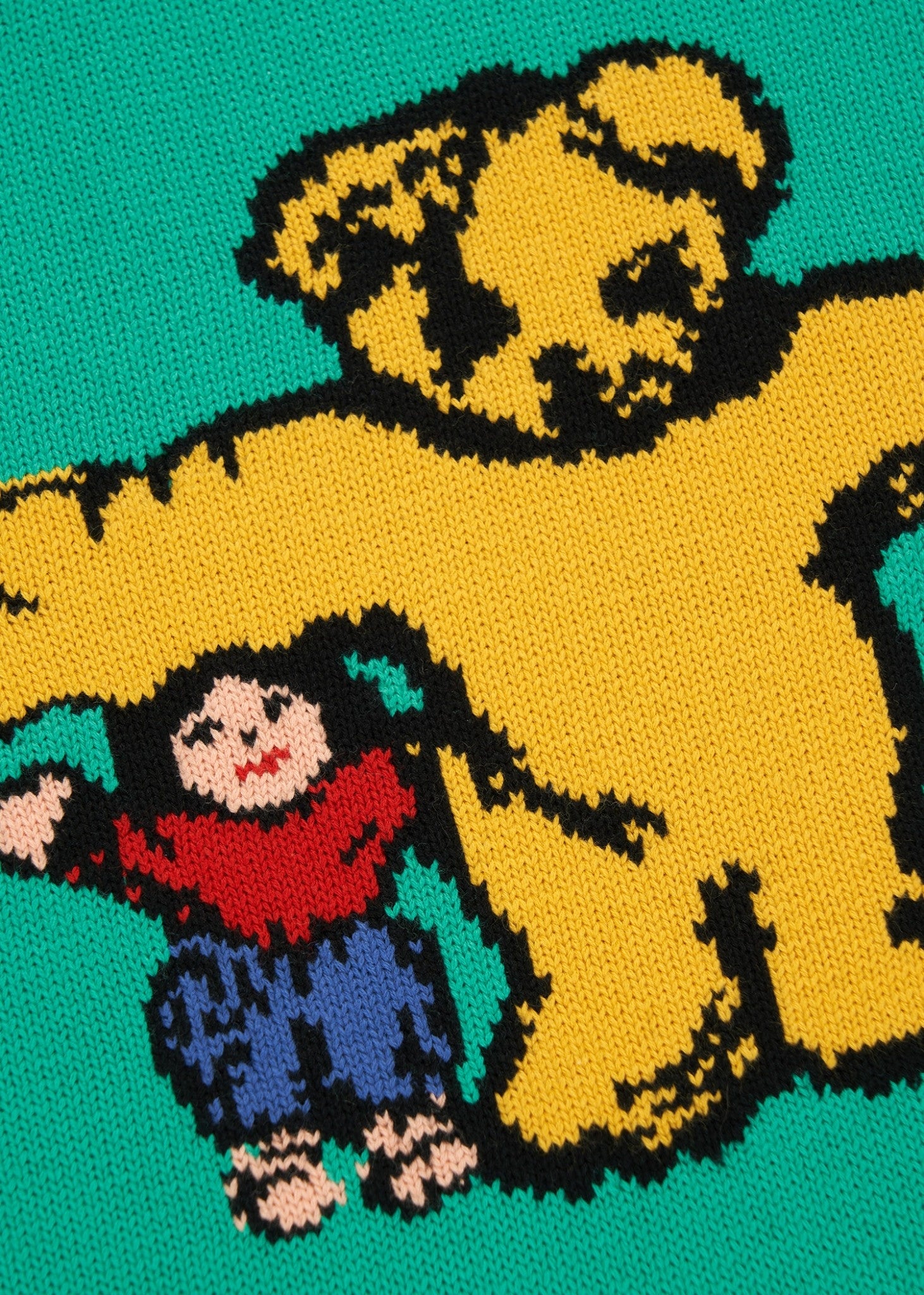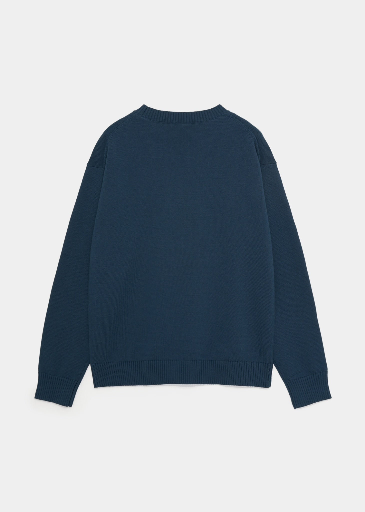 本アイテムは、我喜屋氏の原画作品をニットのインターシャ編みで再現したもので、ユニークでありながらも日常に溶け込む存在感のある一着に仕上がっております。