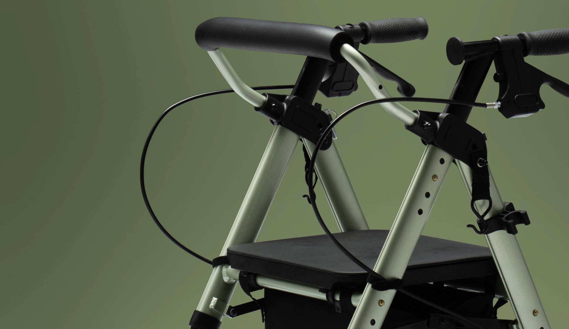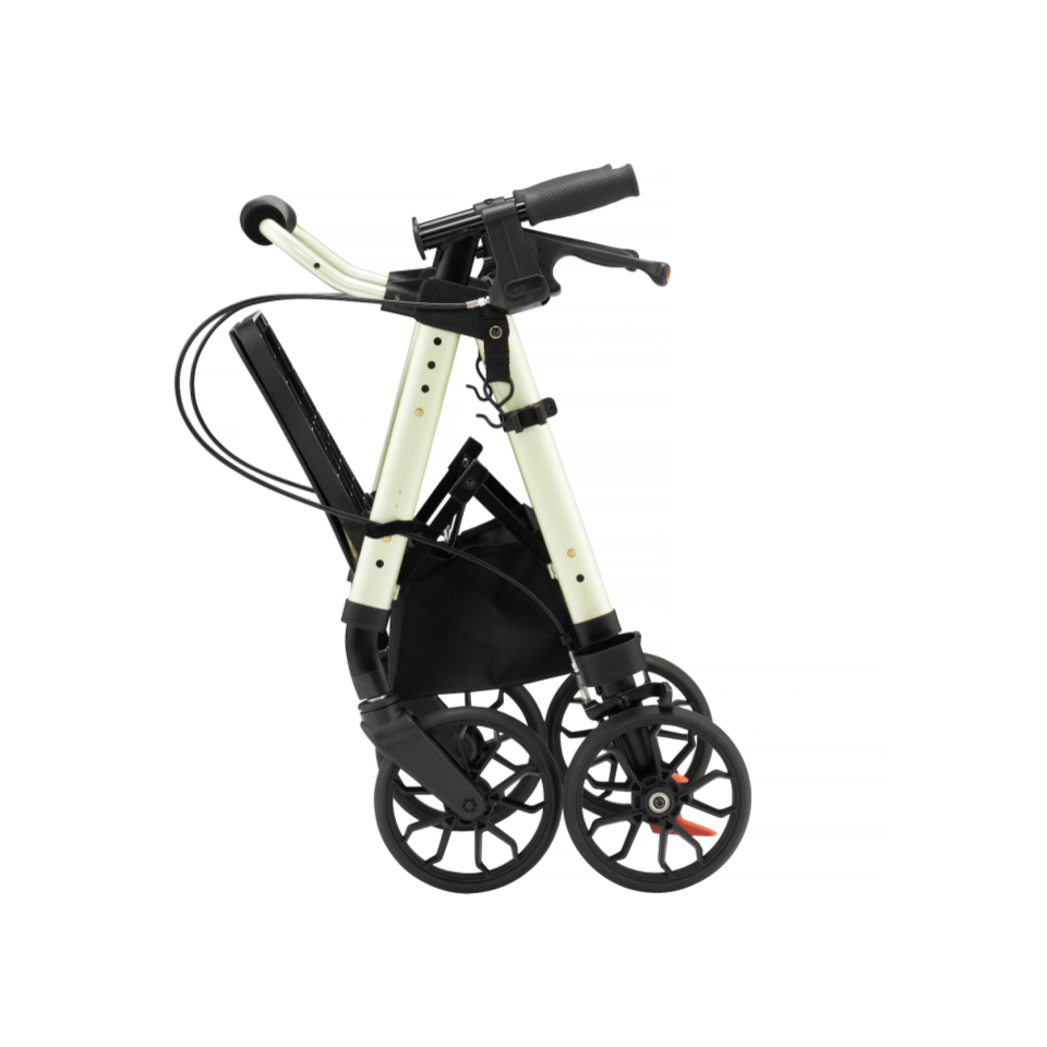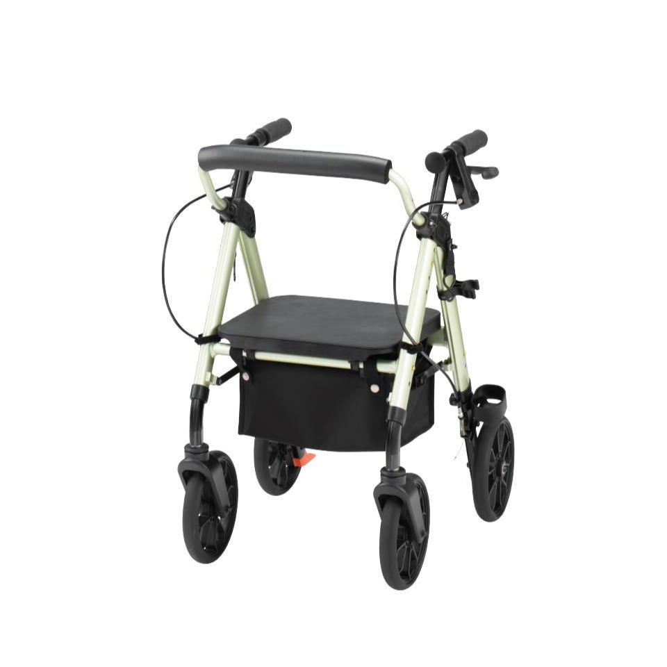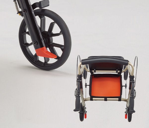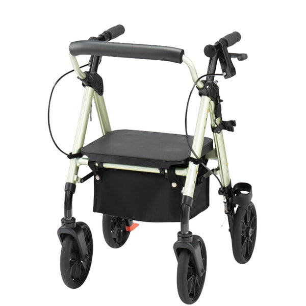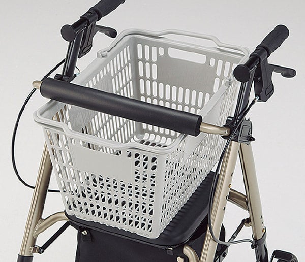 座面に買い物カゴを設置可能、グリップ前方フック付き、視認性に配慮したパーツ配色。“歩行補助具”ではなく、“外出を支える道具”として設計されています。