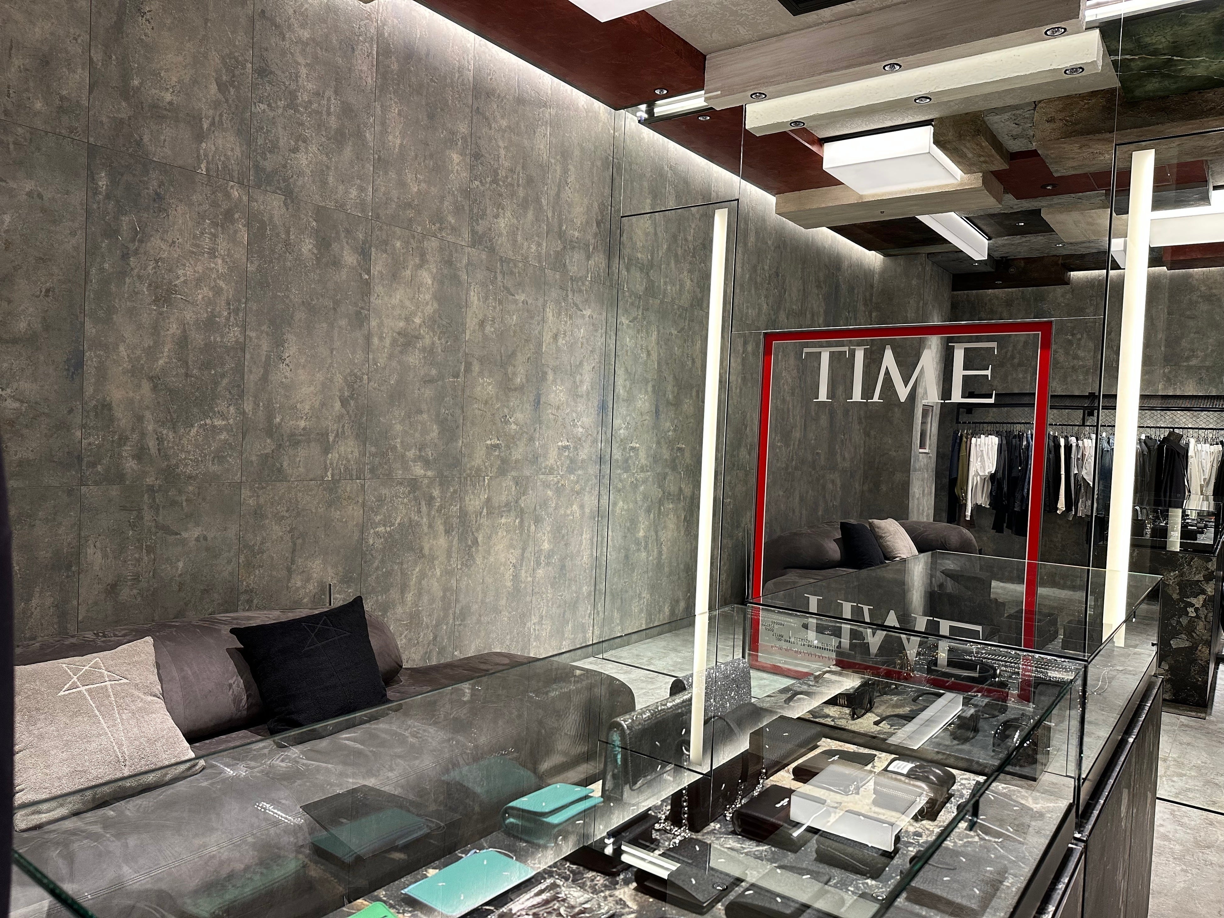 髙木:普段なかなか味わえない、アートにもこだわったこの空間で、海外に来たかのような特別な時間を過ごしていただきたいですね。広い空間だからこそ、洋服だけでなく、空間そのものを楽しんでほしいと考えました。様々なテクスチャーのある家具や、アートを置いています。例えば、自分が雑誌の表紙になったような写真が撮れるアート作品を置くなども取り入れました。