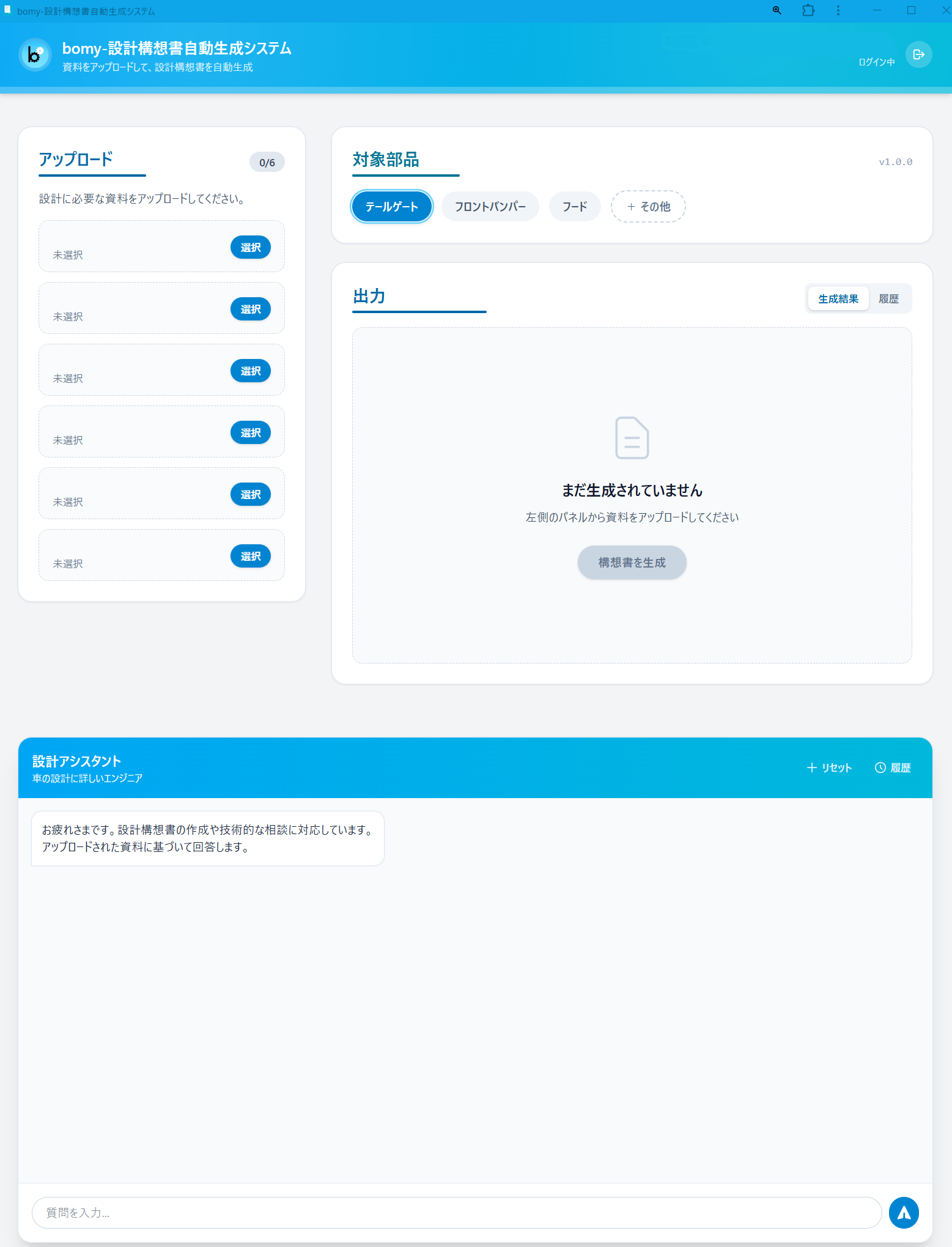「bomy」は、LLM(大規模言語モデル)とRAG(検索拡張生成)を組み合わせ、社内に蓄積された技術ドキュメントをAIが読み解き、設計構想書の自動生成や技術的な質問応答を実現する画期的なシステムです。