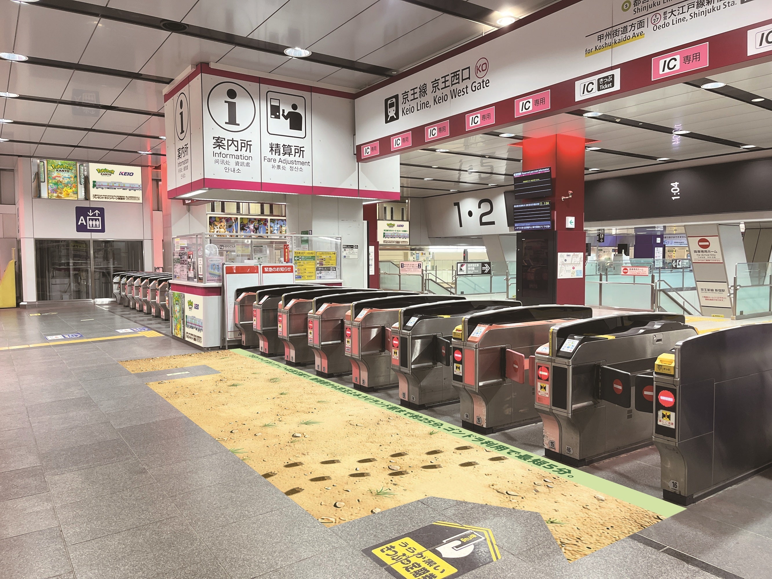 キャンペーン期間である2月23日(月・祝)から3月8日(日)の間、京王線新宿駅構内に『ポケパーク カントー』開業プレゼントキャンペーン告知の装飾展開を実施します。