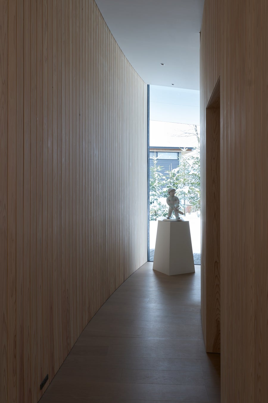 「傀藝堂」は、博多人形づくりを代々受け継ぐ「中村人形」の住居併設型ギャラリーです。台形の土地を活かした“人”のかたちをした空間構成により回遊性を生み出しました。