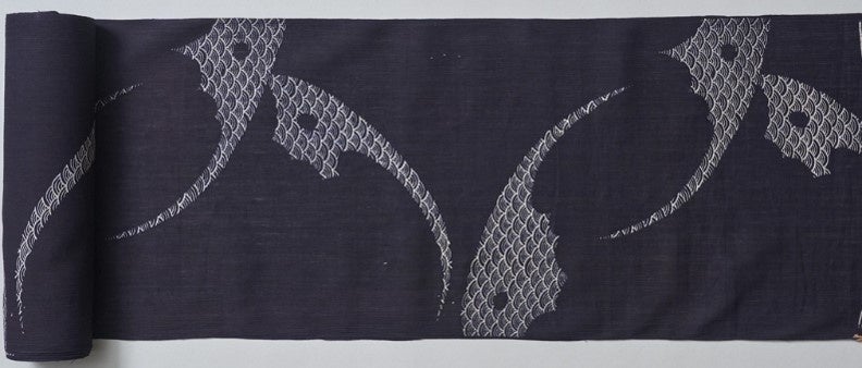 「鯛中鯛(たいちゅうたい)」柄は、三勝の大正時代の反物の意匠です。「鯛の中(なか)の鯛」と呼ばれ、江戸時代から「めでたい鯛の中でさらにめでたい形」として縁起が良いと言われています。鯛の中(器官)で肩甲骨と鳥口骨(うこうこつ)が癒合してできている胸びれを支える骨をイメージした絵柄です。