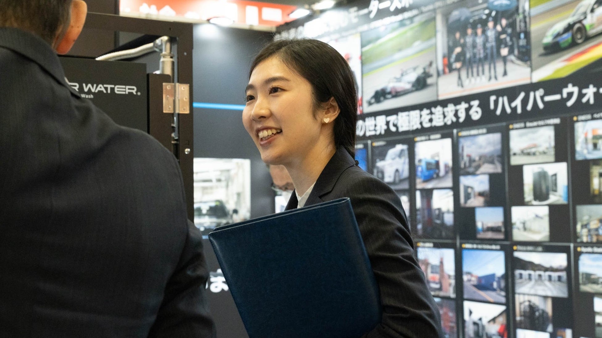 会場では、深刻化する現場の人手不足を背景に自動車ディーラーやサービスステーション(SS)、カーディテーリング事業者から洗車業務を取り巻く課題に対するソリューションに関心が寄せられ、洗車専用超純水システム『HYPER WATER』の提供価値、費用対効果や他社製品との違いに関する質問が相次ぎました。