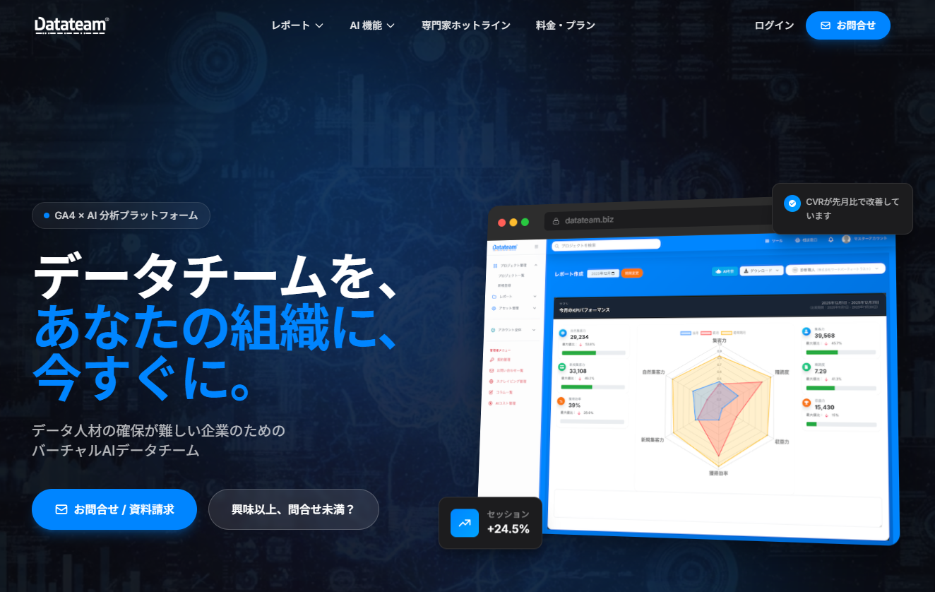 株式会社Datateam(所在地:東京都港区、代表取締役:上村謙輔)は、Webアナリストの思考プロセスを構造化し、分析の進め方そのものを実装したAI分析プラットフォーム「Datateam」を正式リリースしました。