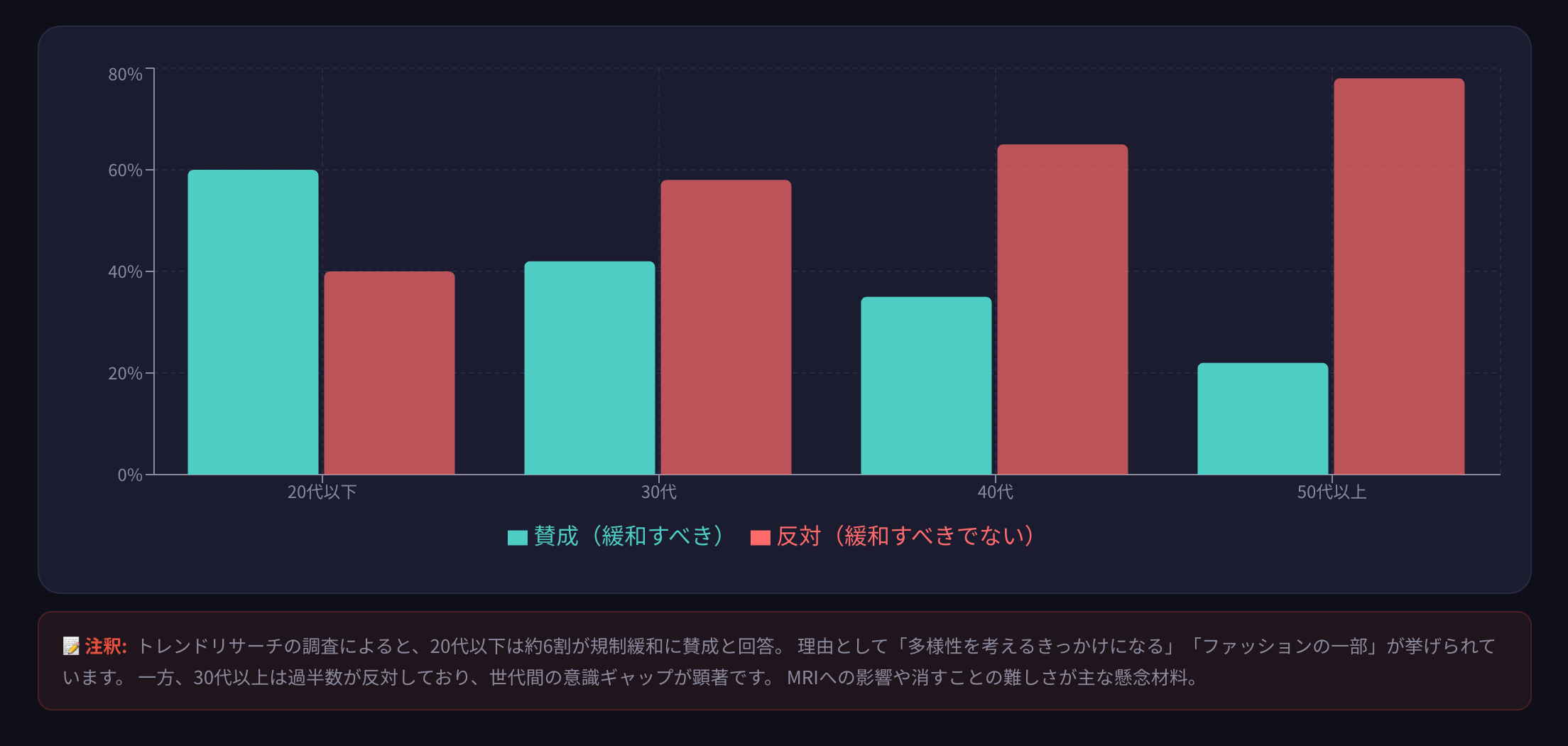 さらに、この成長は一時的なブームではありません。20代以下の約6割がタトゥー規制緩和に「賛成」するなどファッションとしての需要が進み、「Instagramによる集客革命」や「インバウンド需要の増加」といった社会的な転換が、この急成長を後押ししています。