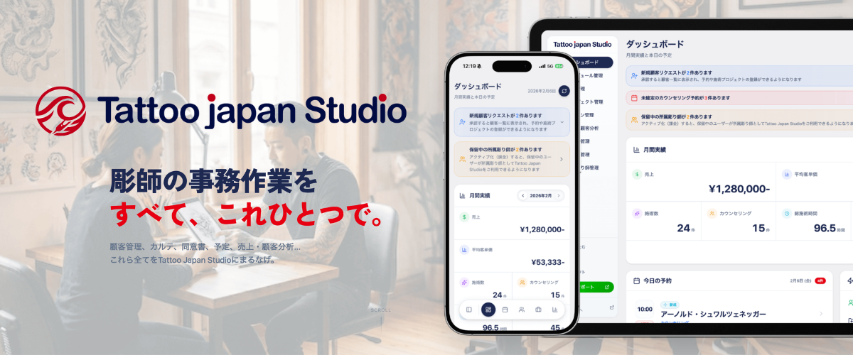 タトゥーメディア『Tattoo Japan』を運営する株式会社Liviro(所在地:大阪府、代表:石山雄一)は、全国の彫師・タトゥースタジオに向けた業界特化型の顧客管理クラウド「Tattoo Japan Studio」を、本日、2026年4月2日より正式ローンチいたしました。