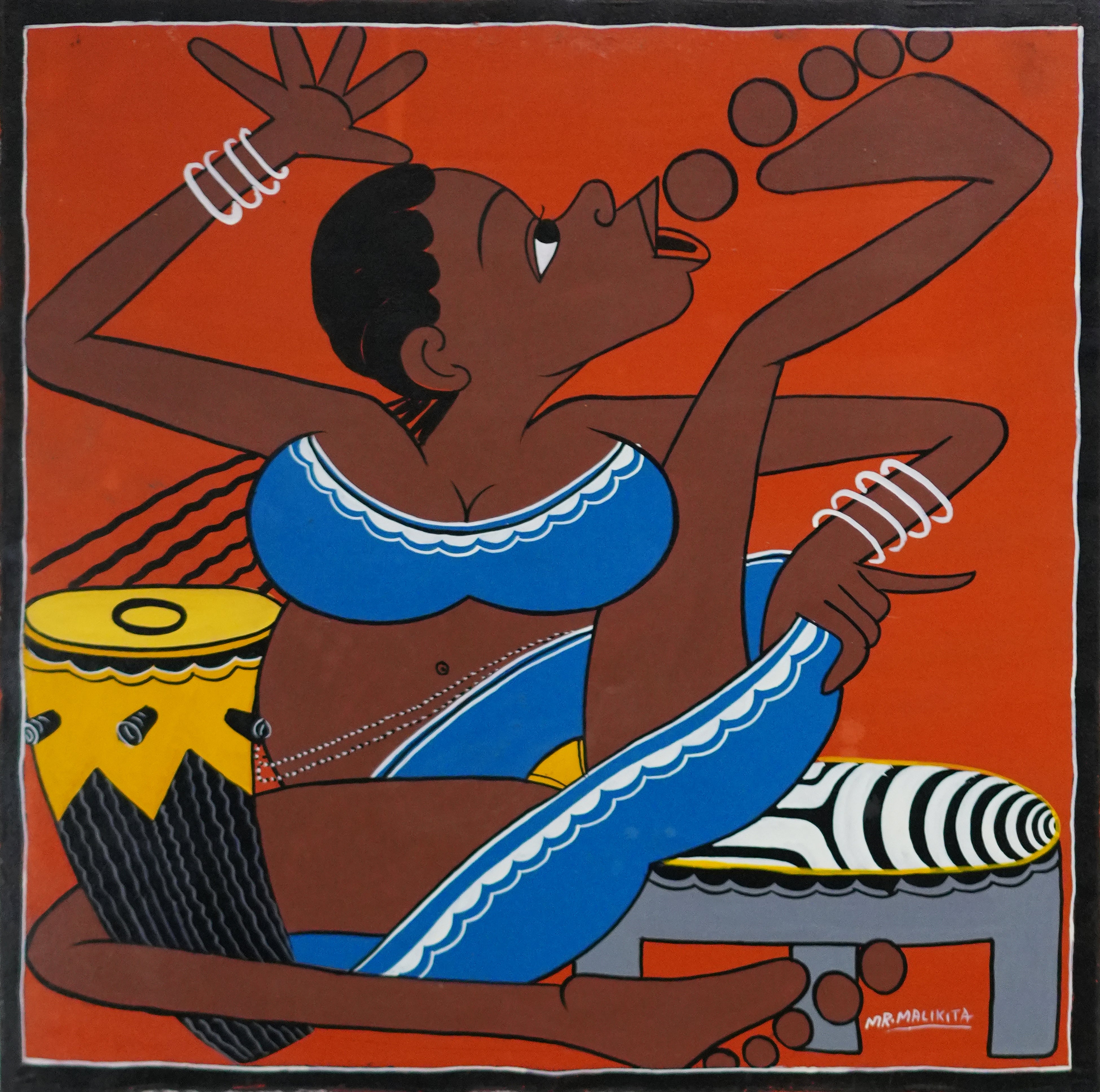 プリミティブなティンガティンガアートの感性を受け継ぎながらも、ポップなタッチで描かれる彼女の作品は、新たなアフリカンアートの魅力を象徴する存在です。