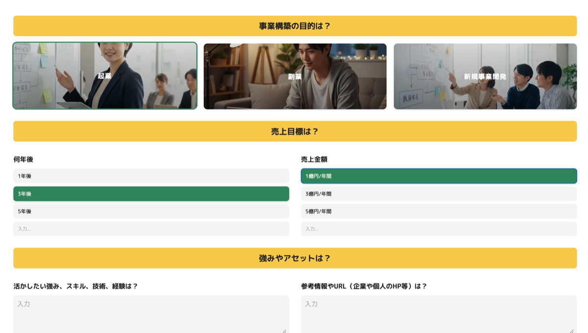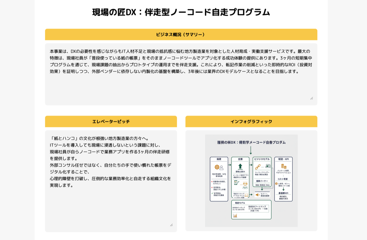 ■ 最短5分。今日から使える「事業企画書一式」を生成