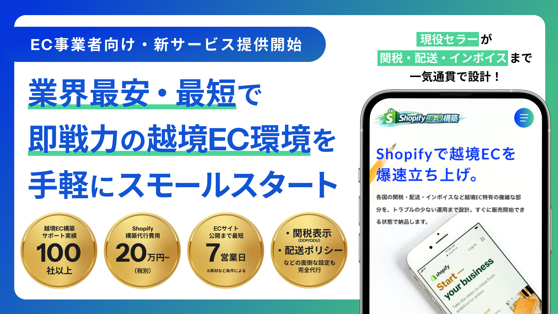 越境Shopify構築を業界最安値の20万円・最短7営業日で提供。現役セラーによる「Shopify爆速構築」サービスをローンチ