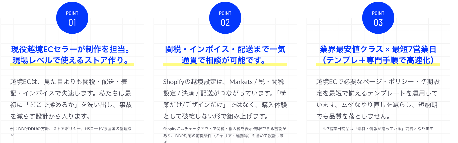 ■「Shopify爆速構築」の3つの特徴