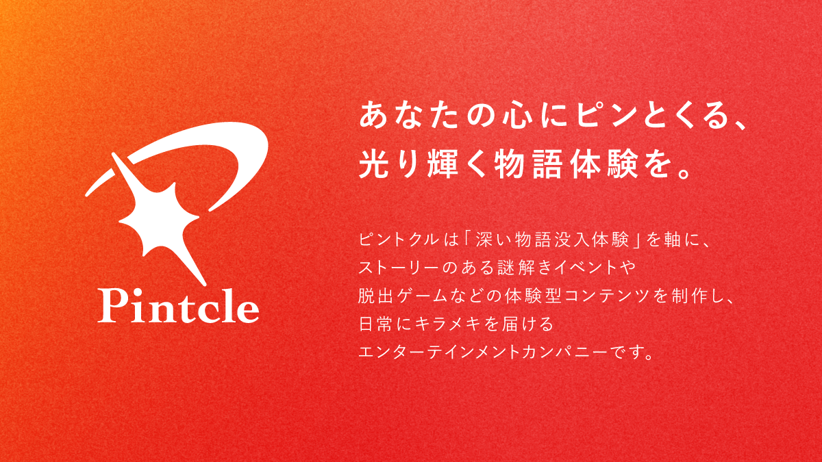 ピントクルは「深い物語没入体験」を軸に、ストーリーのある謎解きイベントや脱出ゲームなどの体験型コンテンツを制作し、日常にキラメキを届けるエンターテインメントカンパニーです。
