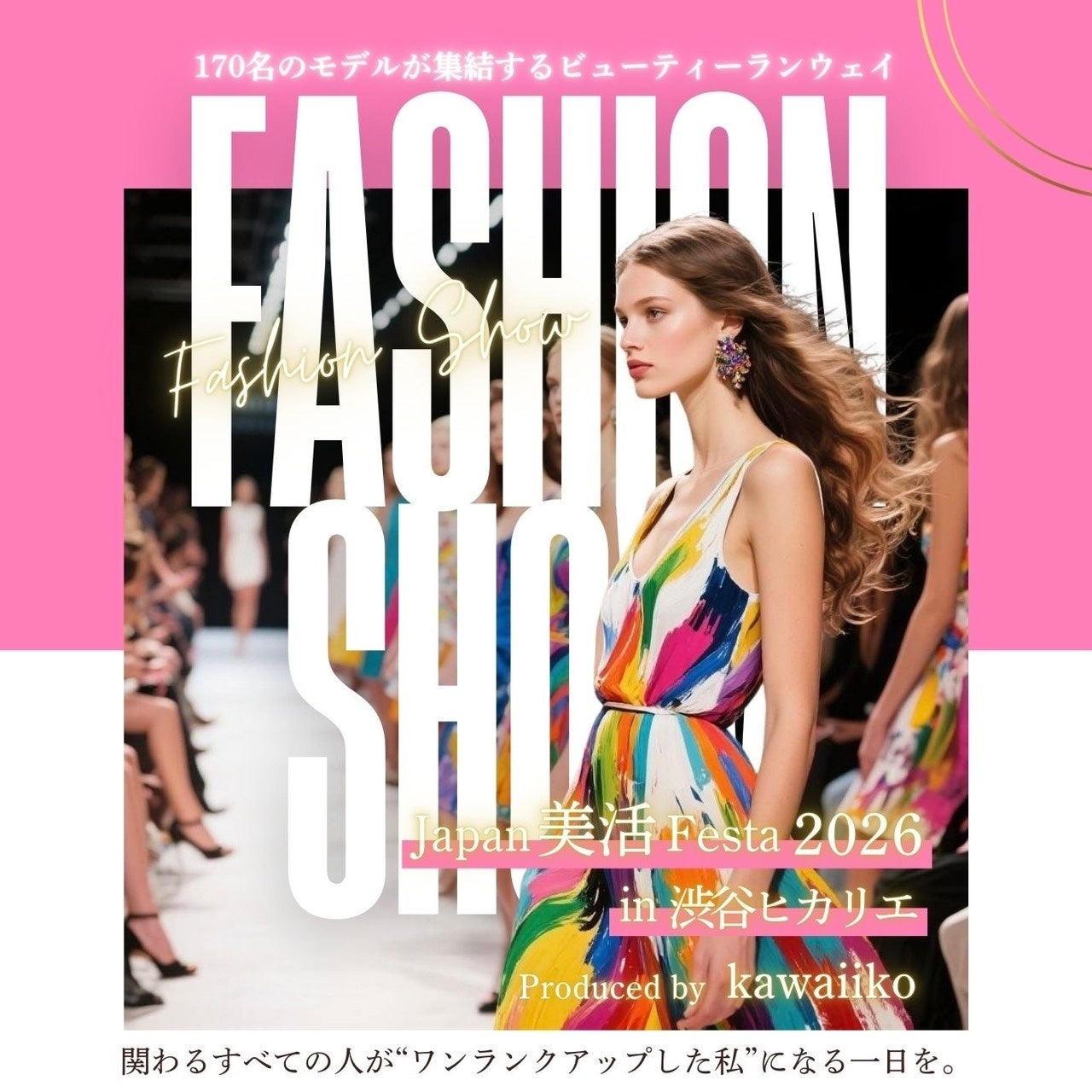 Japan 美活 Festa in 東京 2026は、ランウェイショーとビューティー体験を融合した大型イベント「Japan 美活 Festa in 東京~produced by kawaiiko~」を2026年4月12日、東京・渋谷の複合文化施設である渋谷ヒカリエホールにて開催します。