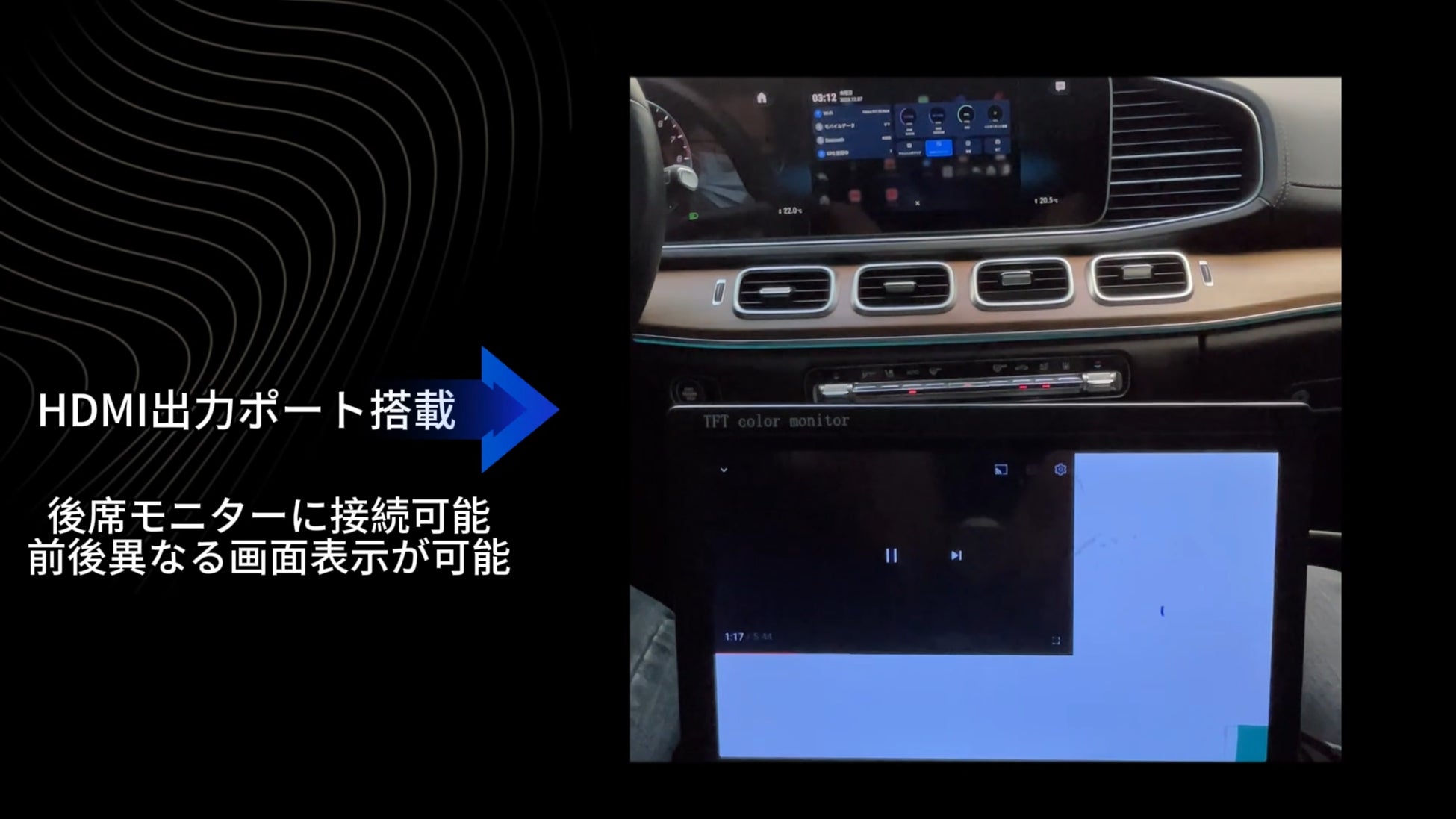 例えば、前席ではナビを使用しながら、後席では動画を再生するといった使い方もでき、