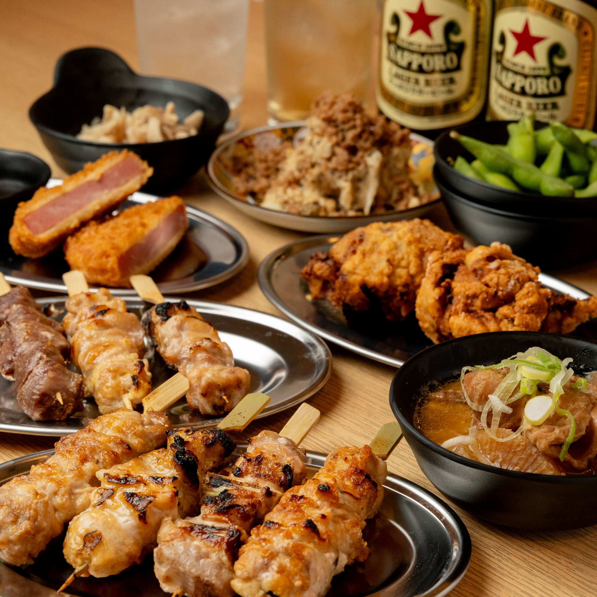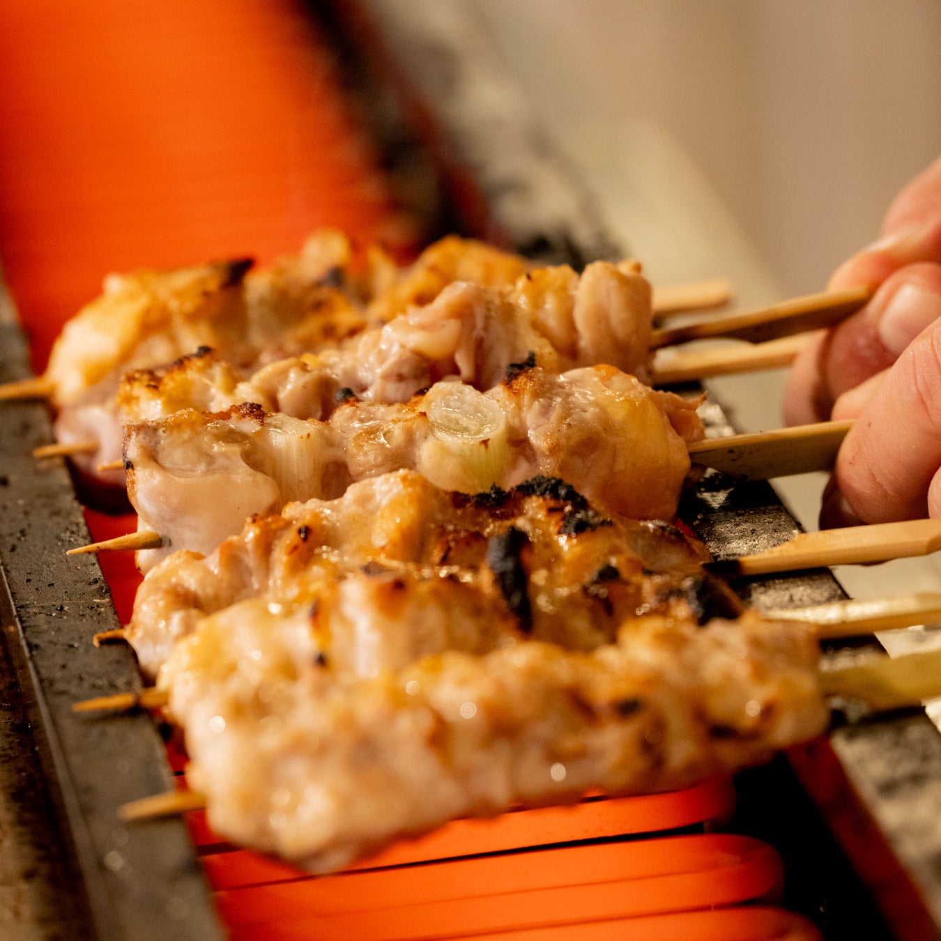 絶妙な火加減で香ばしく焼き上げる当店の大ぶり焼き鳥。一般的な焼き鳥のグラム数の相場は約30g〜40g前後に比べ、当店では60gを標準とし、満足感ばっちり。外はパリッと小気味よい食感、中は肉汁を閉じ込め、驚くほどジューシーな仕上がりです。噛むほどに溢れ出す鶏肉本来の濃厚な旨みは、キンキンに冷えたビールやハイボールと相性抜群です。