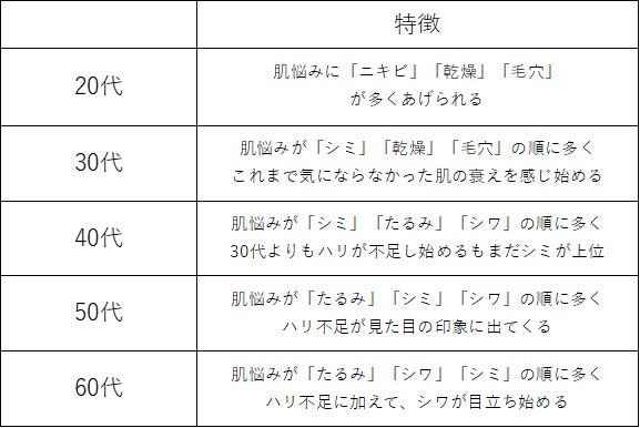 【各年代で挙げられる肌悩みの特徴】