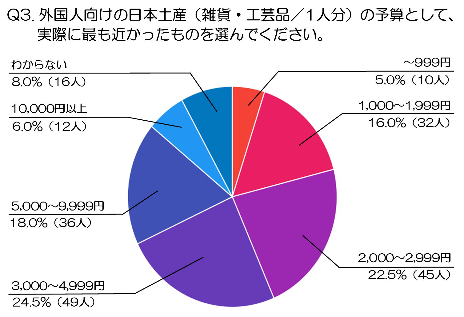 3.外国人向けの日本土産(雑貨・工芸品/1人分)の予算として、実際に最も近かったものを選んでください。