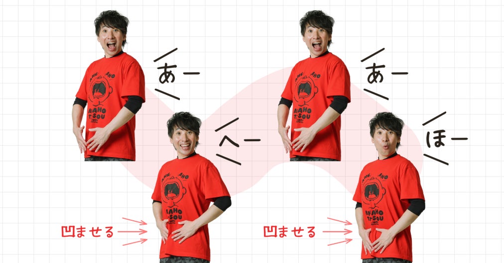 「あへあほ体操」は、「あーへーあーほー」と発声しながら「へ」と「ほ」のタイミングでお腹をへこませるシンプルな基本動作を軸とした、体幹トレーニングです。この基本動作はドローインと呼ばれる呼吸トレーニングをベースにしており、腹横筋などのインナーマッスルを効果的に刺激します。立ったままでも座ったままでも取り組めることから、運動が苦手な方や車椅子をご利用の方でも、無理なく腰痛や膝痛対策に取り組むことが可能です。