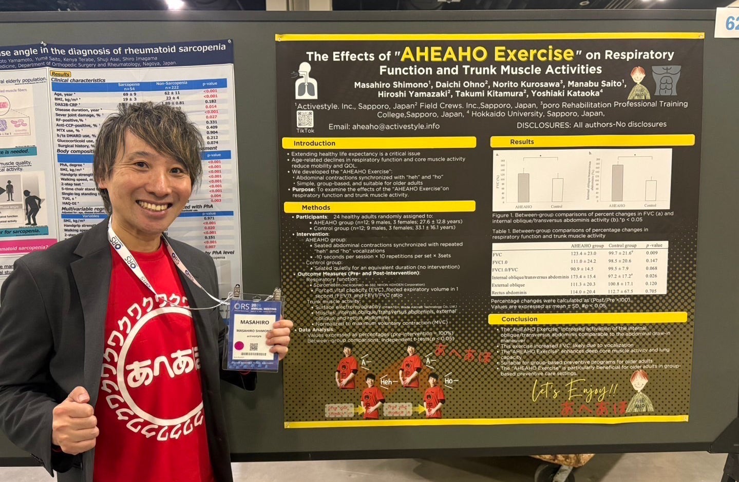 株式会社アクティブスタイル(北海道札幌市、代表取締役:齊藤 学)は、2026年3月28日(土)、アメリカで開催された「米国整形外科基礎学会」にて、自社が展開する体幹トレーニング「あへあほ体操」の基本動作がもたらす効果に関する共同研究成果を発表いたしました。当日は本動作が医学的に評価されるドローイン運動と同等の働きを示すデータを提示するとともに、デモンストレーションを実施し、現地で広く体験の場を提供しました。