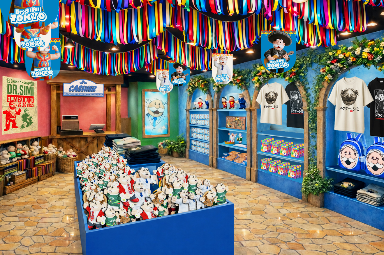 メキシコで国民的アイコンとして愛されるDr. Simiは、日本のキャラクター文化へのリスペクトと、新たな文化交流の架け橋となることを目的に、今回初めて日本に上陸します。会場では、音楽ゲームやオリジナルコンテンツ、ここでしか手に入らない限定グッズの販売などを通じて、遊んで・見て・体感できる、Dr. Simiの世界観に没入できる体験空間を展開します。