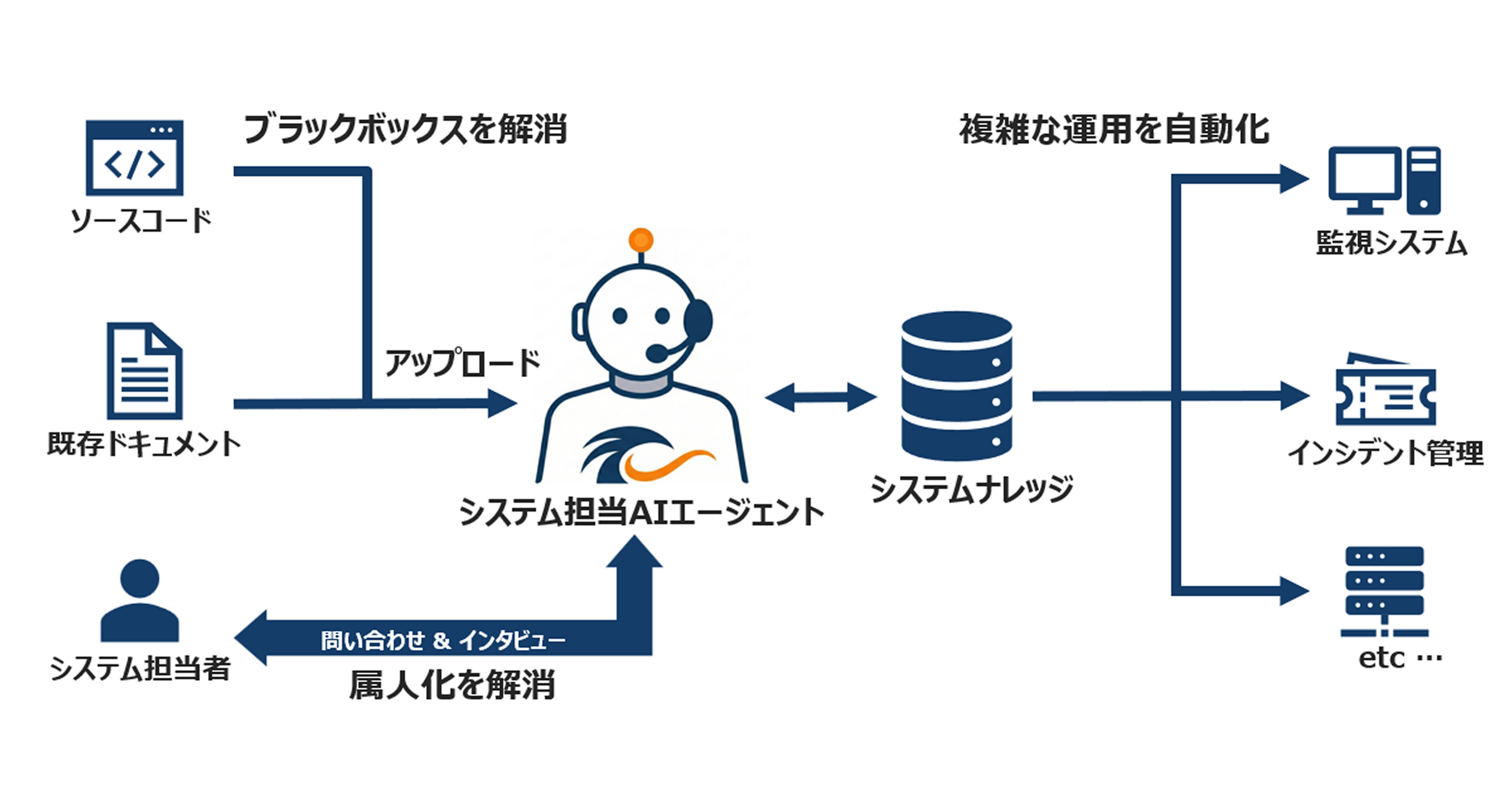 システムをAIで深く理解することから始め、「人間の担当者とAIの対話」を通じて、これらの負債を価値ある「資産(ナレッジ)」へと変えるソリューションとして本サービスを開発いたしました。