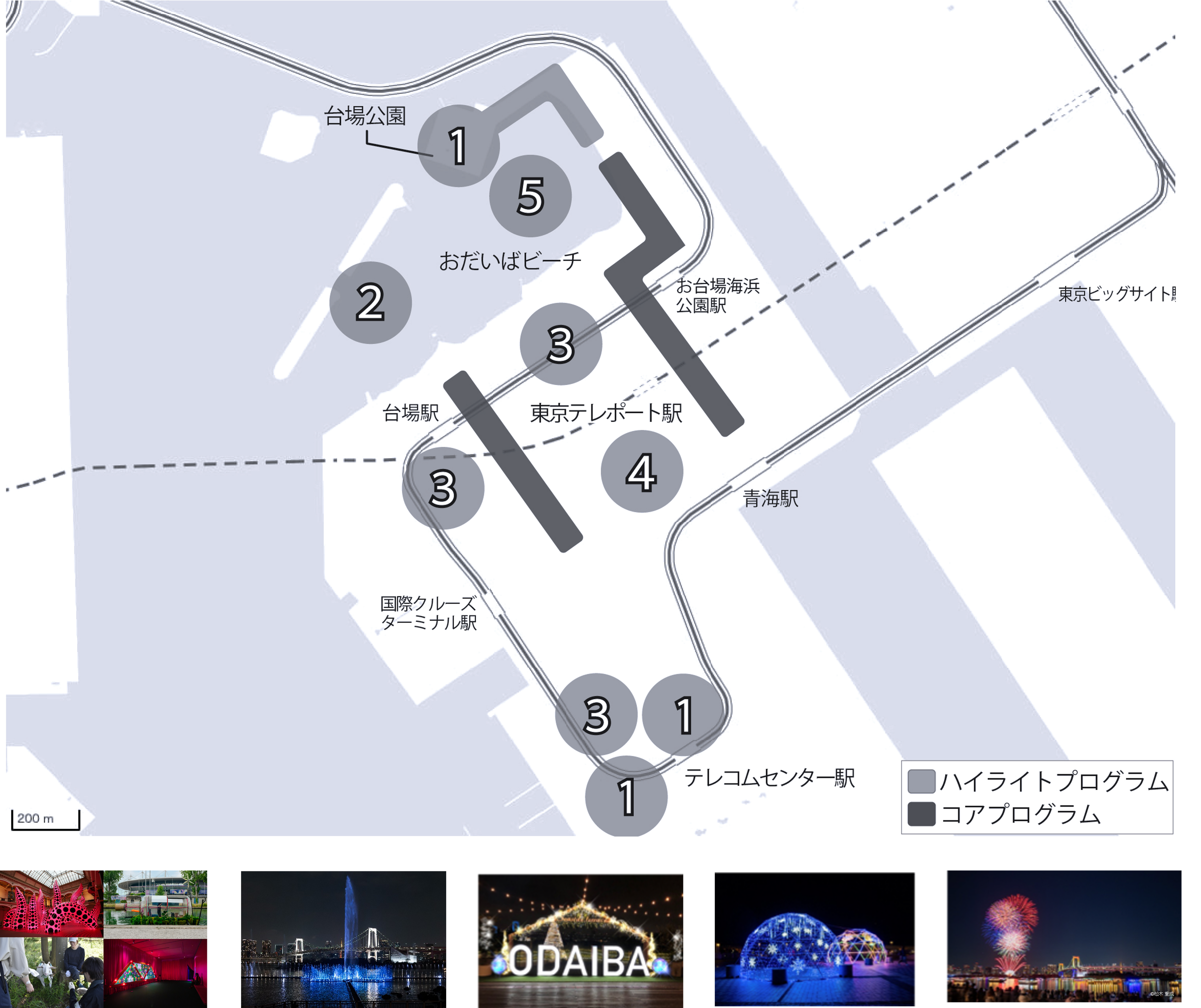 2026年3月に運用を開始した 「東京アクアシンフォニー」の噴水演出や、本芸術祭と同時期に開催される「国際美術展TOKYO ATLAS」、臨海副都心の風物詩である「イルミネーションアイランドお台場」などと連動しながら、スケールを生かした、没入的な体験を広げます。