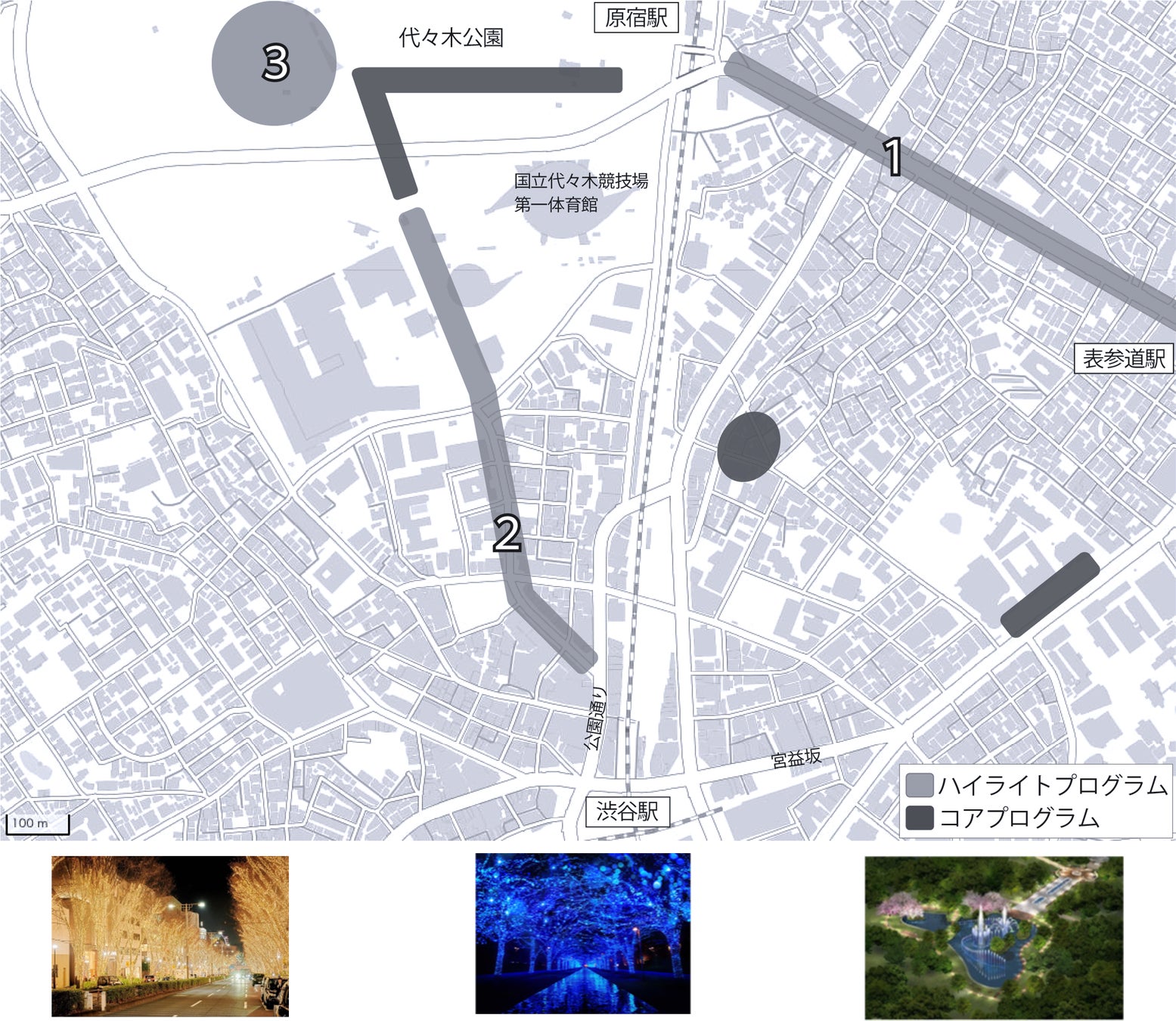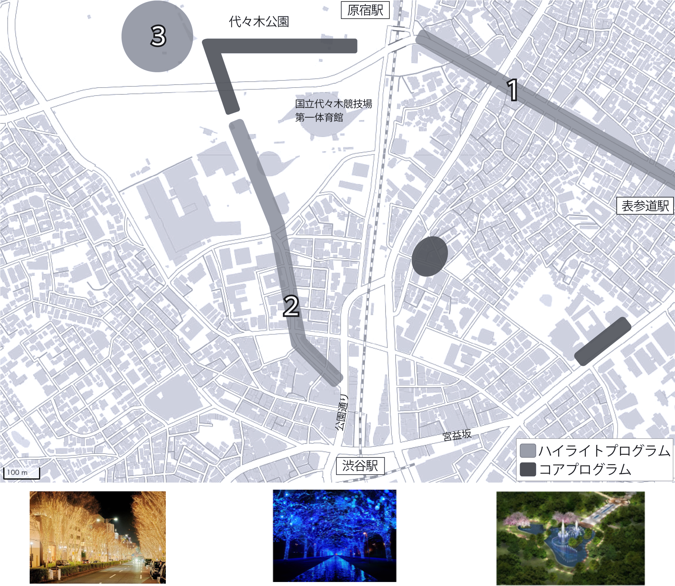 ARTE TOKYOでは、象徴的なイベントやベニューが集積する3つのコアエリアを中心に、パートナープログラム等との連携を通じて、多摩・島しょ地域を含む都内各地へと展開していきます。