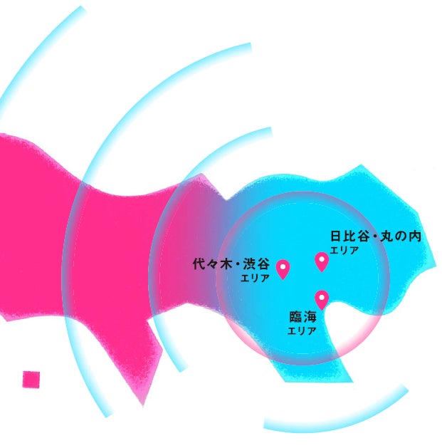 開催コアエリア 臨海エリア、日比谷・丸の内エリア、代々木・渋谷エリア